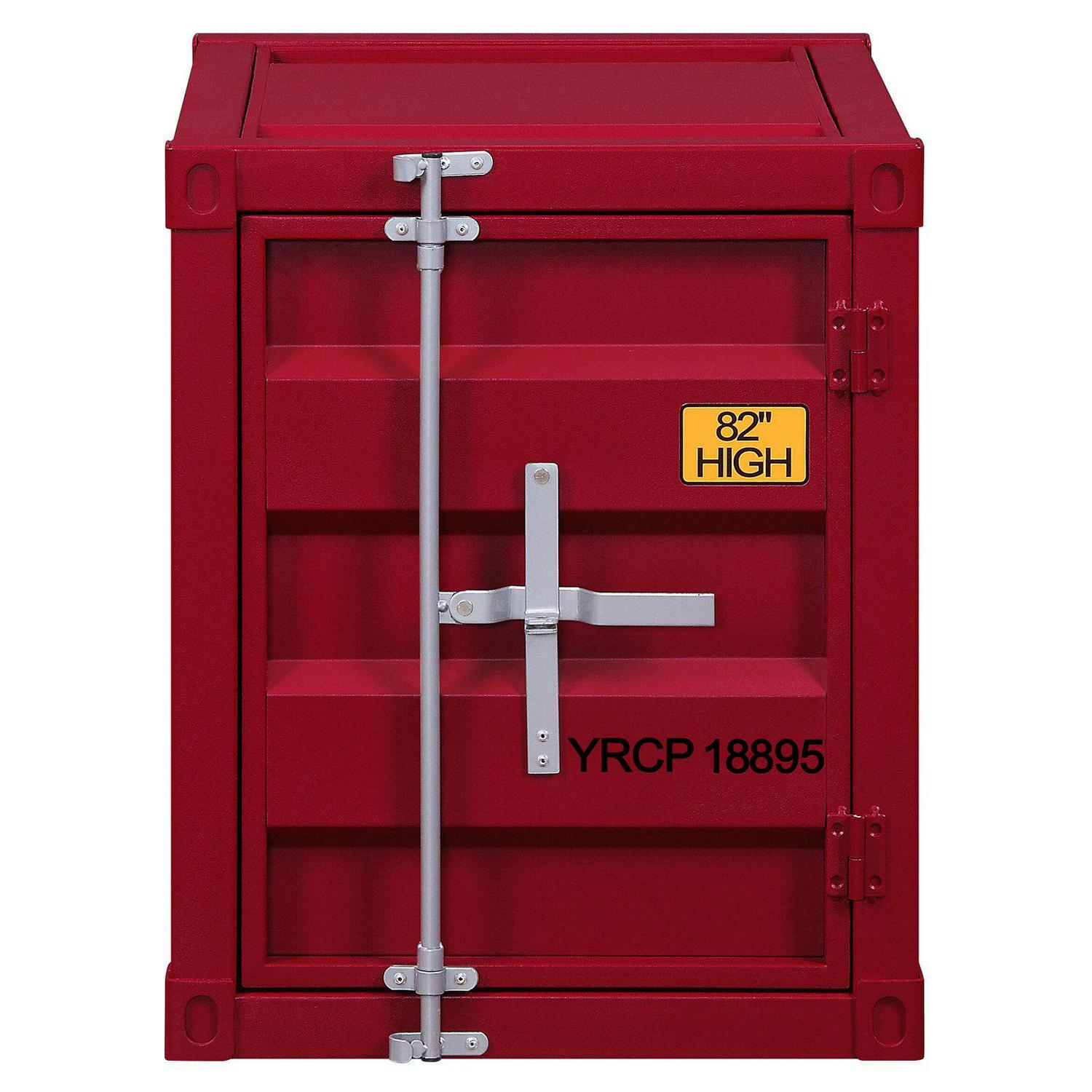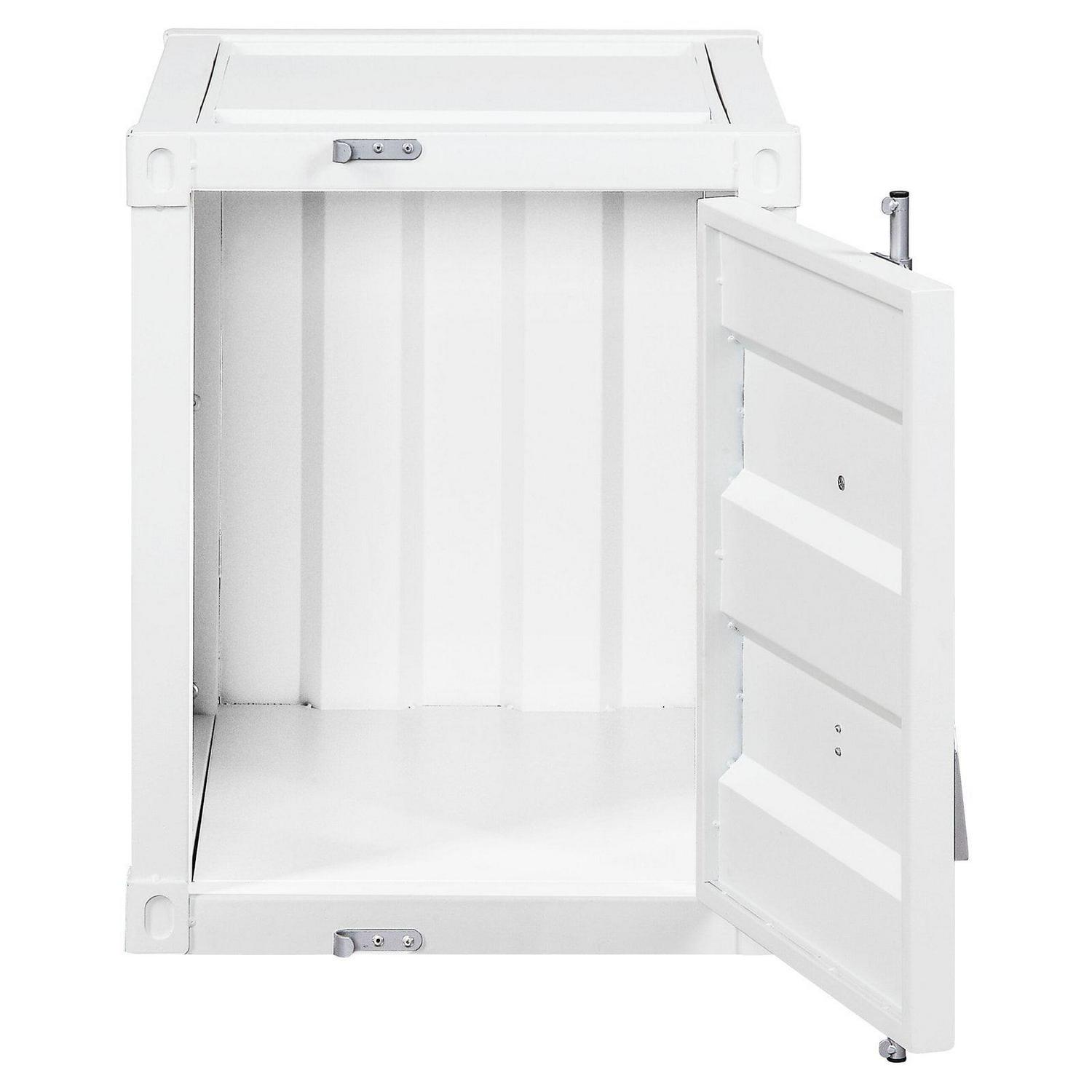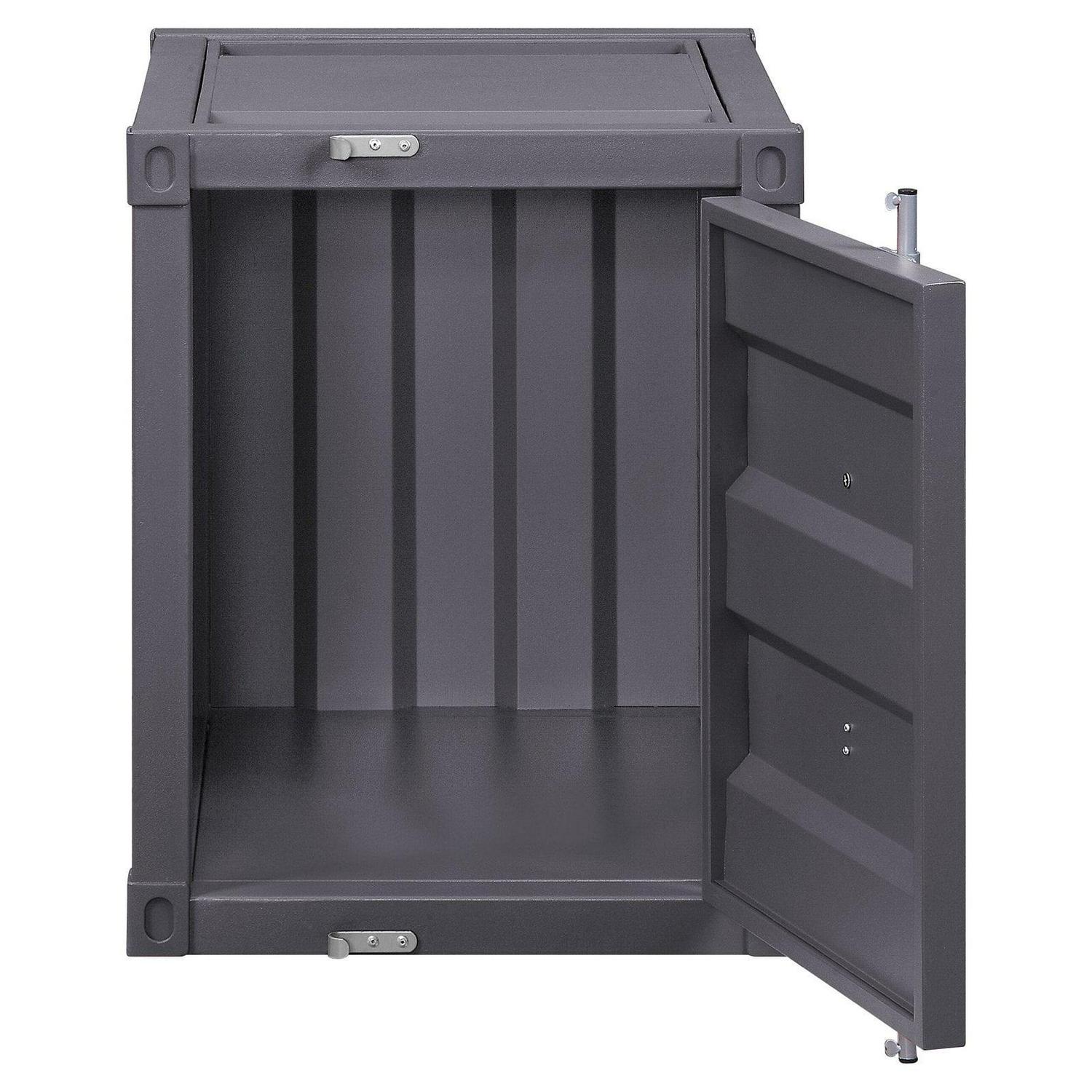 Product Details : KD; Square End Table : Storage: 1 Door (Inside 1 Compartment) : Features: Metal Frame; Recessed Panels (Cargo Container Panels); Full-Length Container Lock : (NO LEGS) :: CONSTRUCTION :: Metal Case: Iron Plate (40mm)