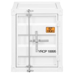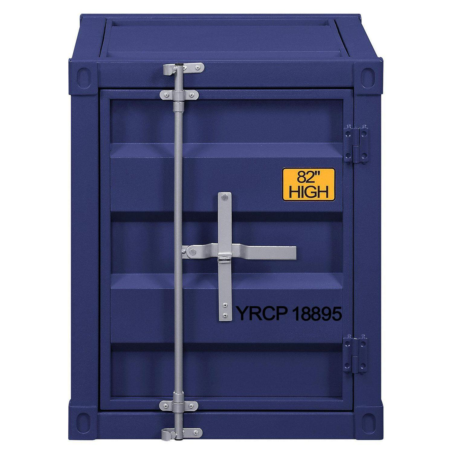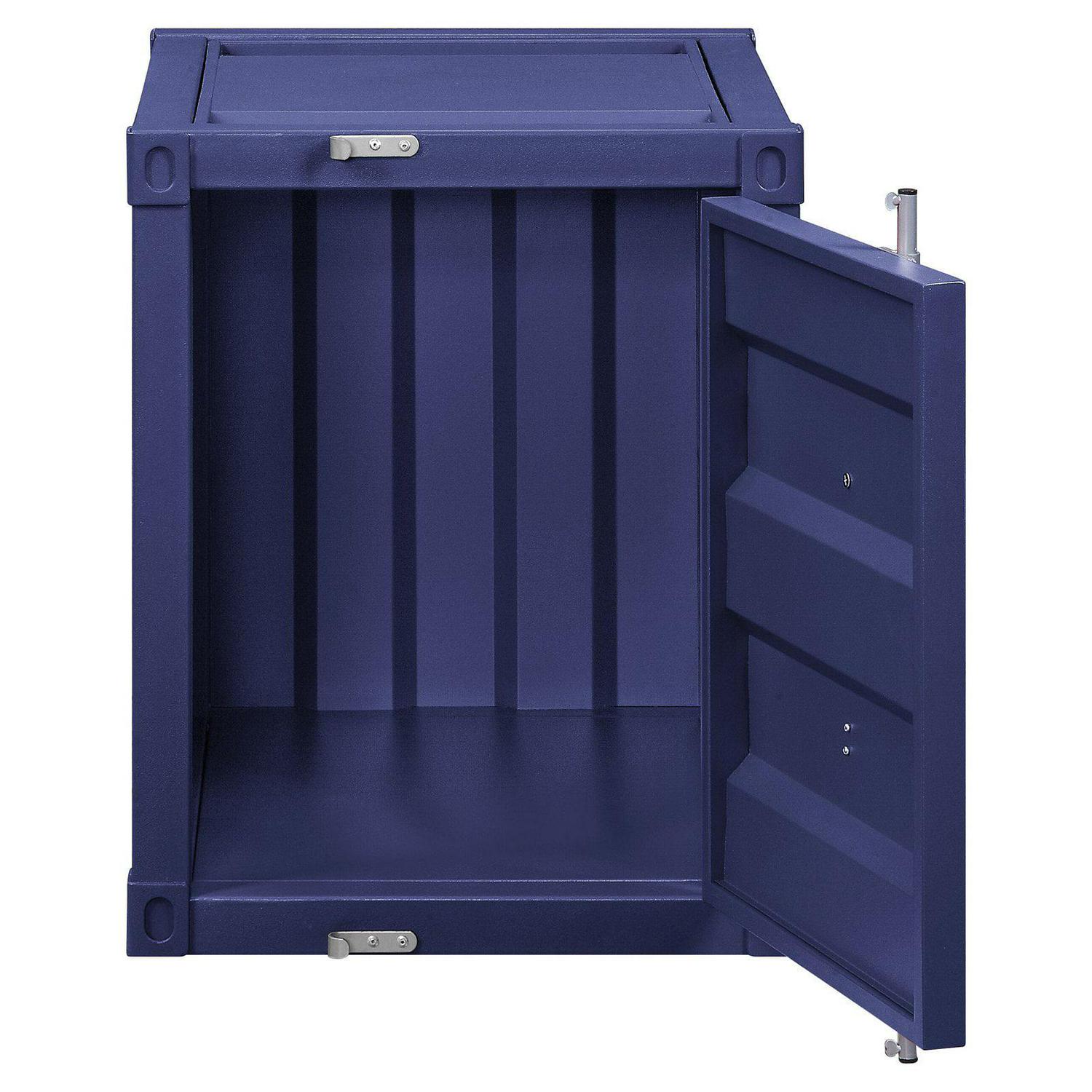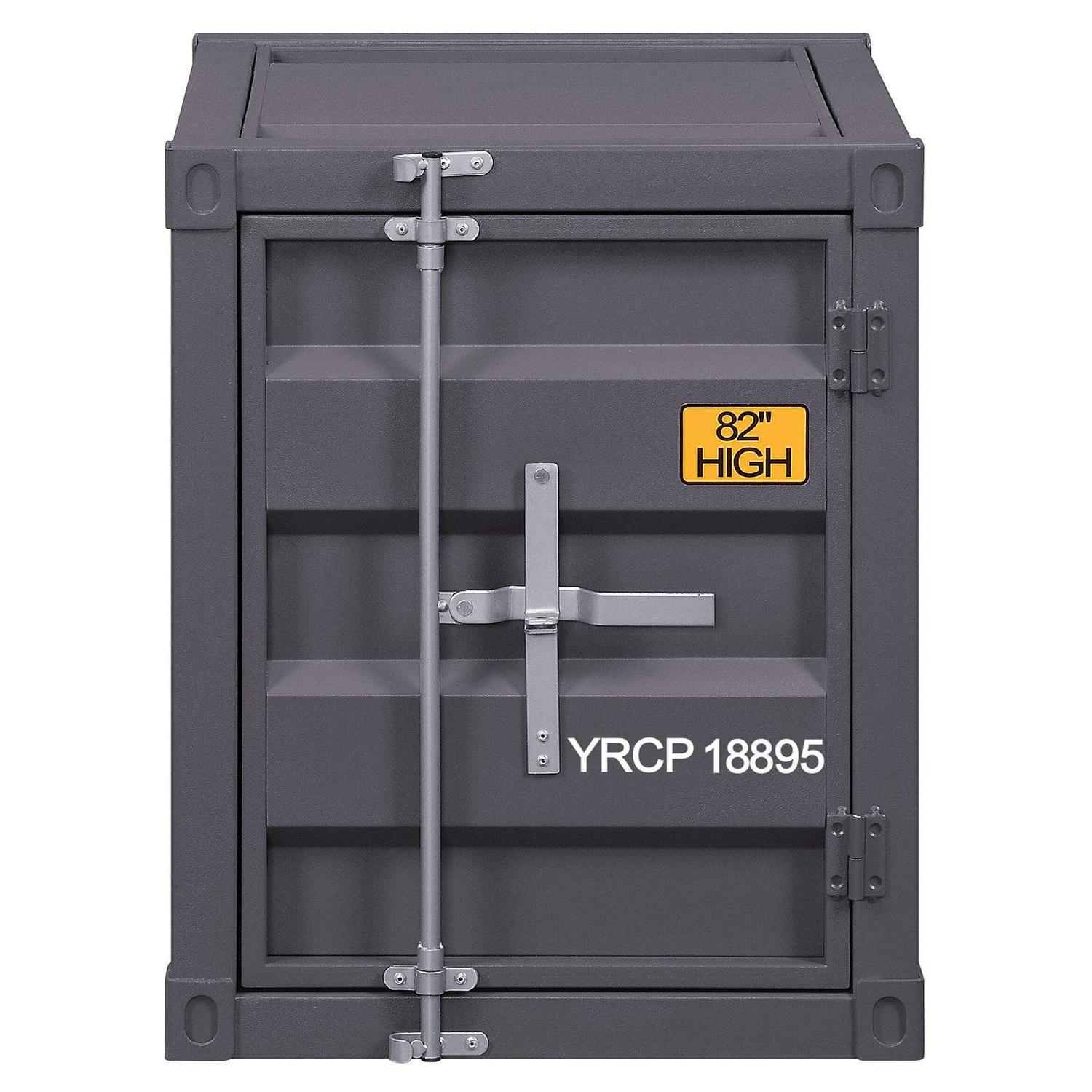 Product Details : KD; Square End Table : Storage: 1 Door (Inside 1 Compartment) : Features: Metal Frame; Recessed Panels (Cargo Container Panels); Full-Length Container Lock : (NO LEGS) :: CONSTRUCTION :: Metal Case: Iron Plate (40mm)