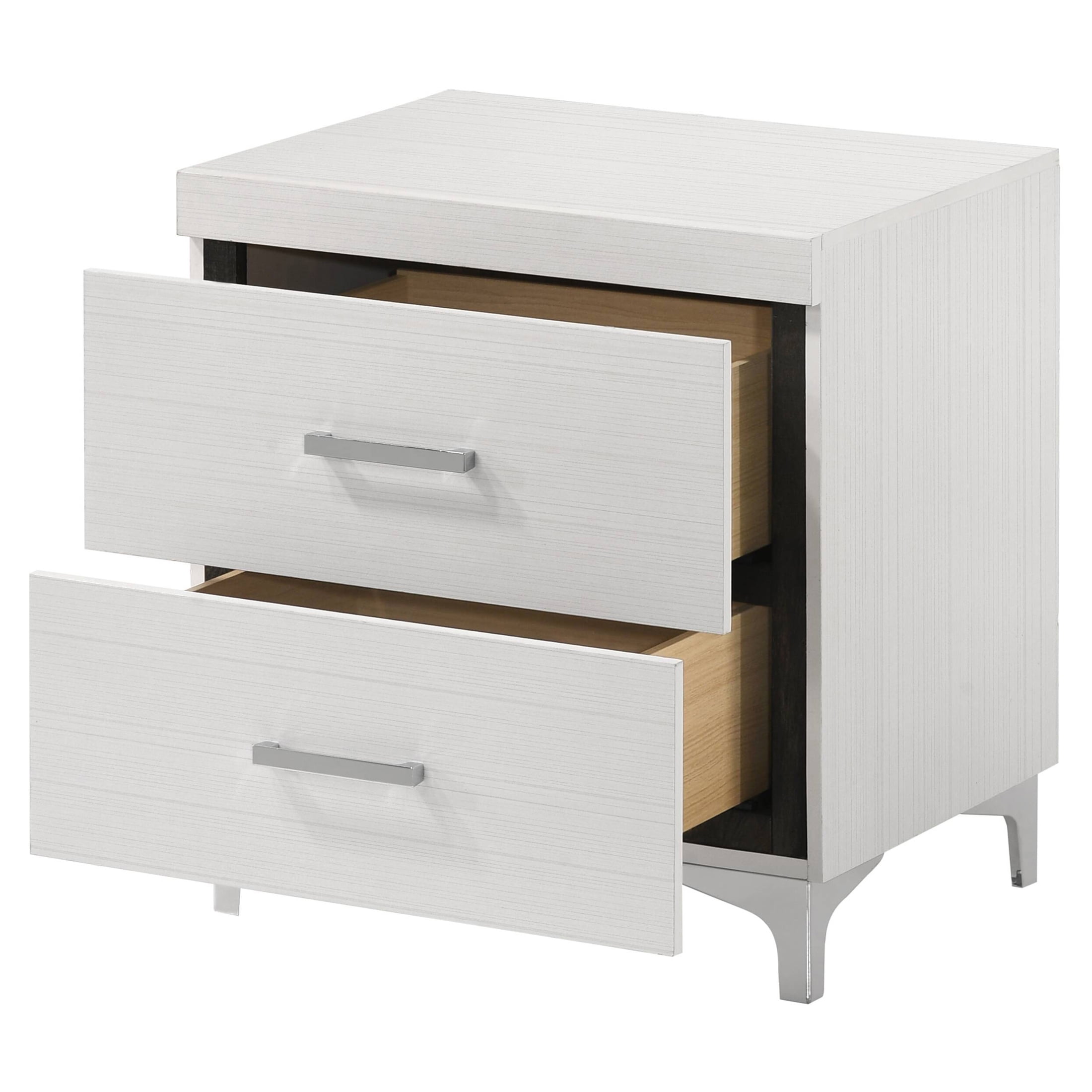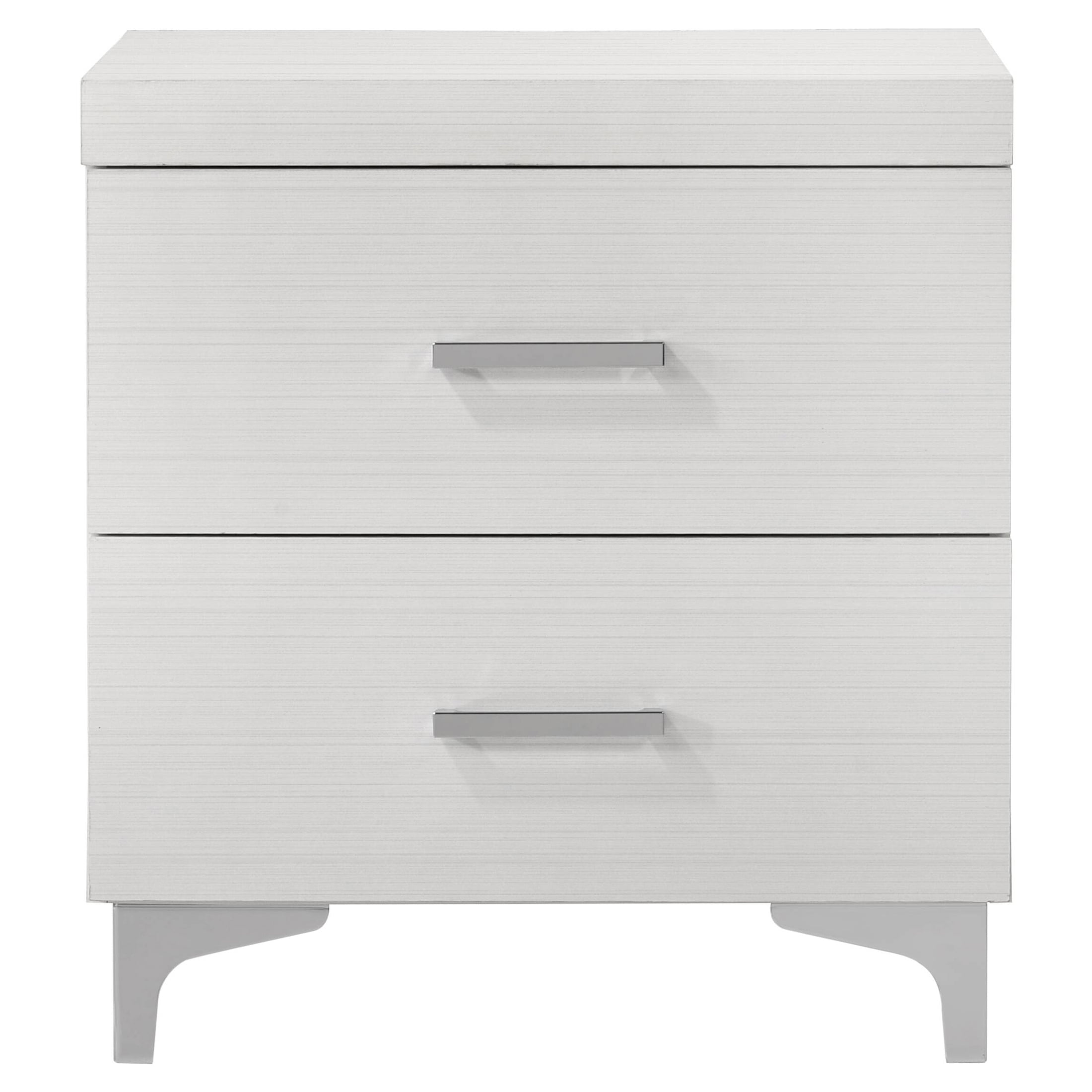 The Casilda bedroom collection will help you create the perfect retreat. In a white finish to easily style and works with various color schemes. Tying each piece together are the metal legs. The bed boasts a PU padded headboard with button tufting in a gray color. The headboard also includes LED lighting to illuminate your room at night. Complete your bedroom with matching case goods.