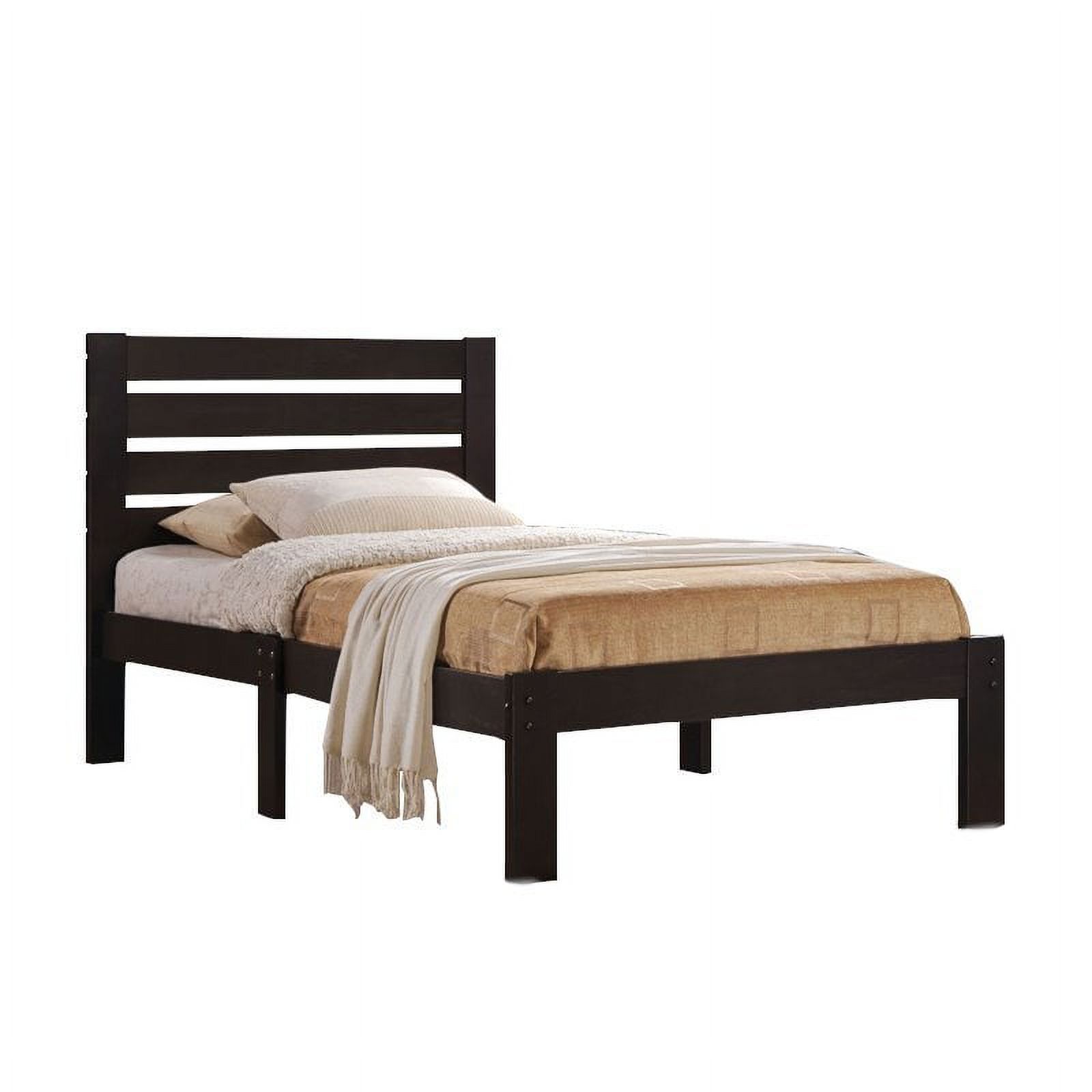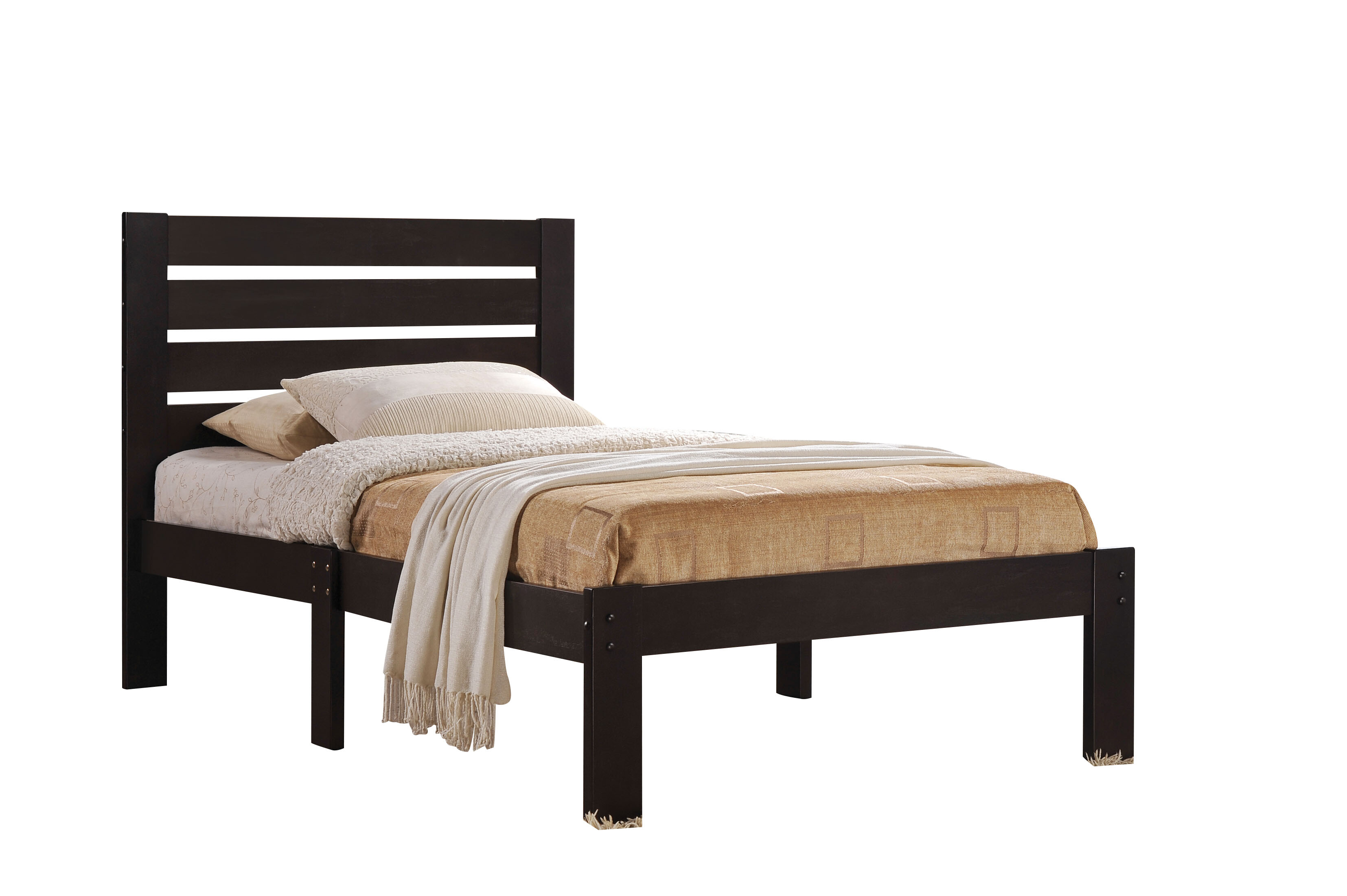 The Kenney bed creates a clean and casual look that will match any bedroom decor. Features wooden slatted headboard, low profile footboard, and is carefully crafted with selected wood and veneers. Box Spring is not required.