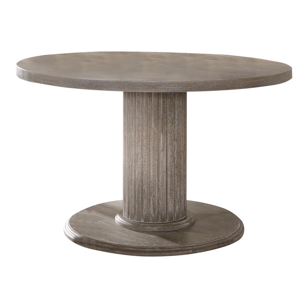 Round Single Pedestal Table: This design provides a focal point, creating an intimate setting ideal for engaging conversations. Fixed Top: Ensures stability and durability, making it suitable for everyday use. Wooden Top: The wooden surface adds warmth and elegance to the table, enhancing its overall aesthetic appeal. Spectacular pedestal base with a fluted column design Elegant wooden top Fixed top for stability Suitable dimensions for a sophisticated dining area