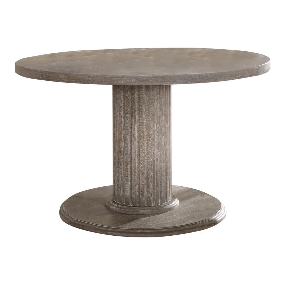 Ideal for a sophisticated dining area, the Gabrian dining table, and its beautiful artistic accents will transform a conventional room into a luxurious dining space. The table features a spectacular pedestal base with fluted column design type setting.