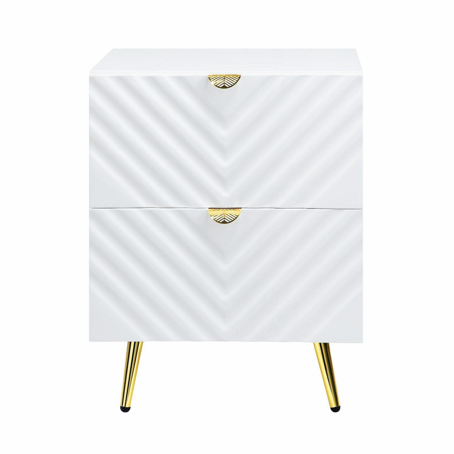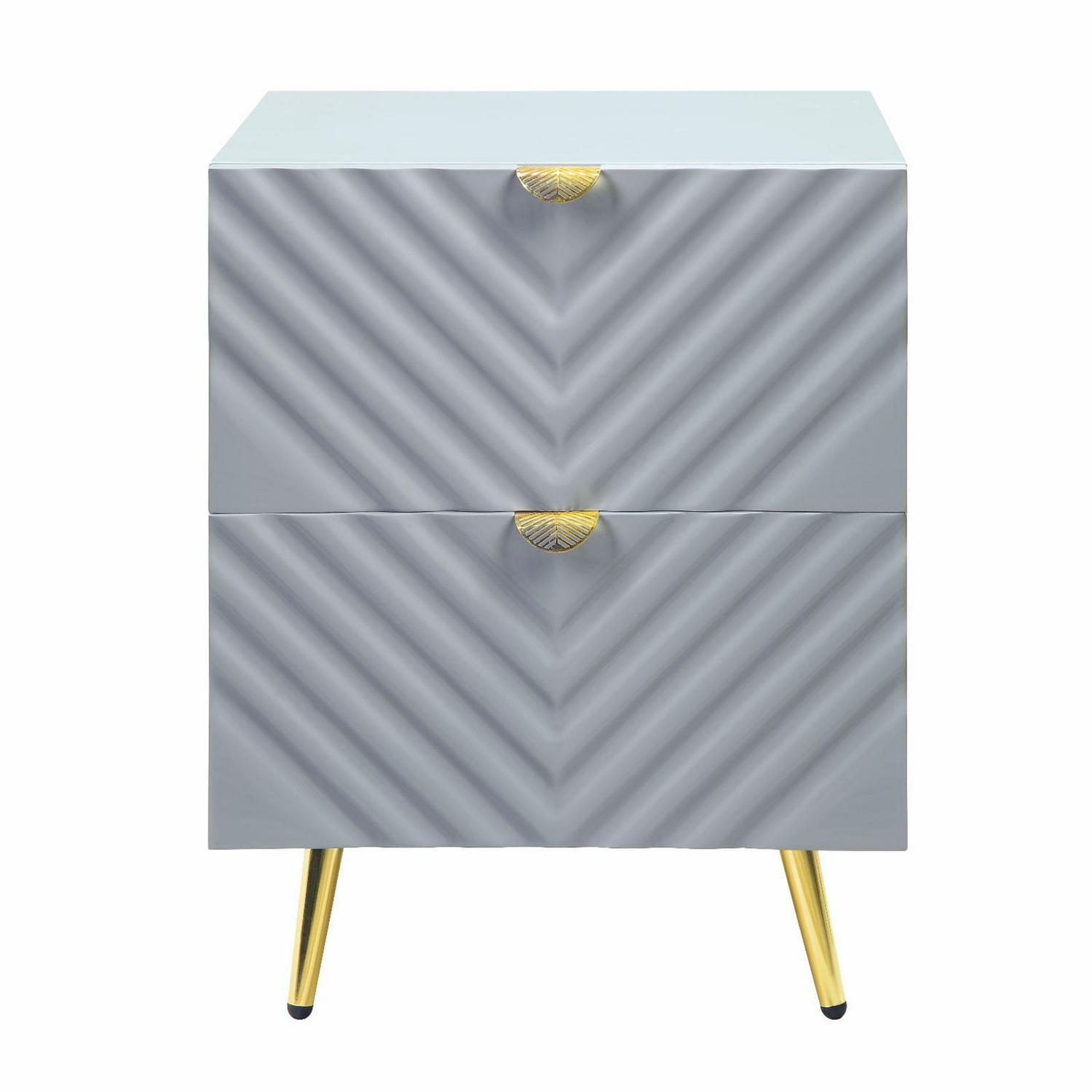 ACME Gaines Nightstand, Gray High Gloss Finish