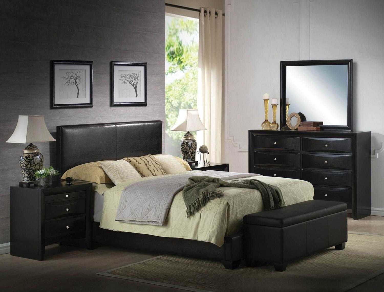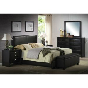 ACME Ireland Queen Panel Bed in Black Faux Leather, Multiple Sizes
