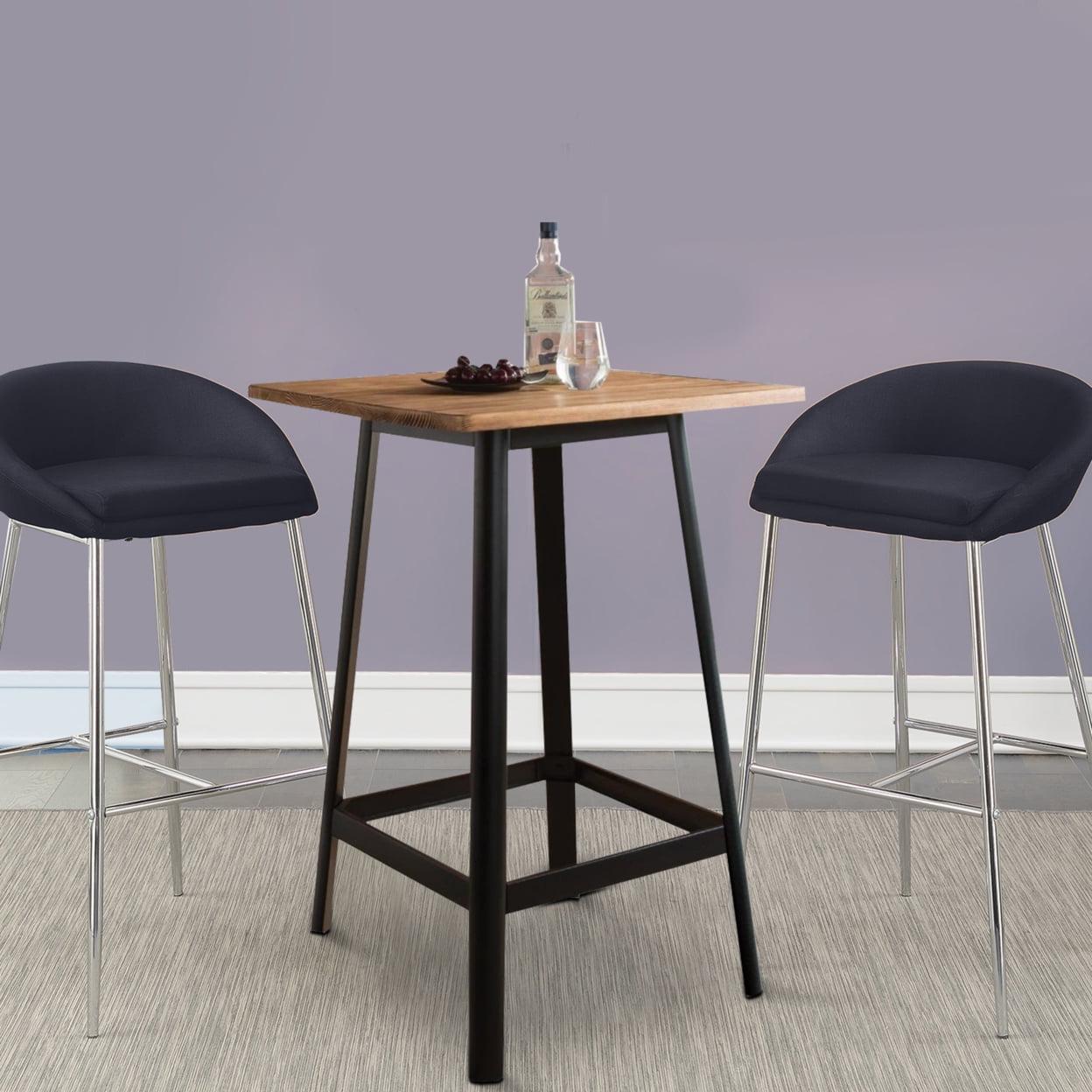 Transitional Square Shaped Wooden Bar Table With Metal Base, Black and Brown- Saltoro Sherpi This bar table is made with superior quality wood and supported metal leg along with stretcher. Square in shape, this bar table is designed with perfection and features elegant combination of black and brown color that perfectly blends with all decor styles. It provides a great sitting space when accompanied by bar stools. Other featured items in image except table are sold separately.