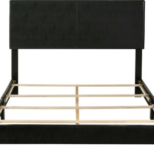 Crafted with style and characters, this bed offers comfort with a touch of a delicate retro feel. The amazing lien queen bed reflects contemporary design with sleek straight lines in this fully padded bed. Crafted with selected faux leather materials in a black finish, this stylish bed is the perfect match for any bedroom. A hint of unique styling provides a clean and classic look for your contemporary home. This bed will definitely shine in your bedroom space.