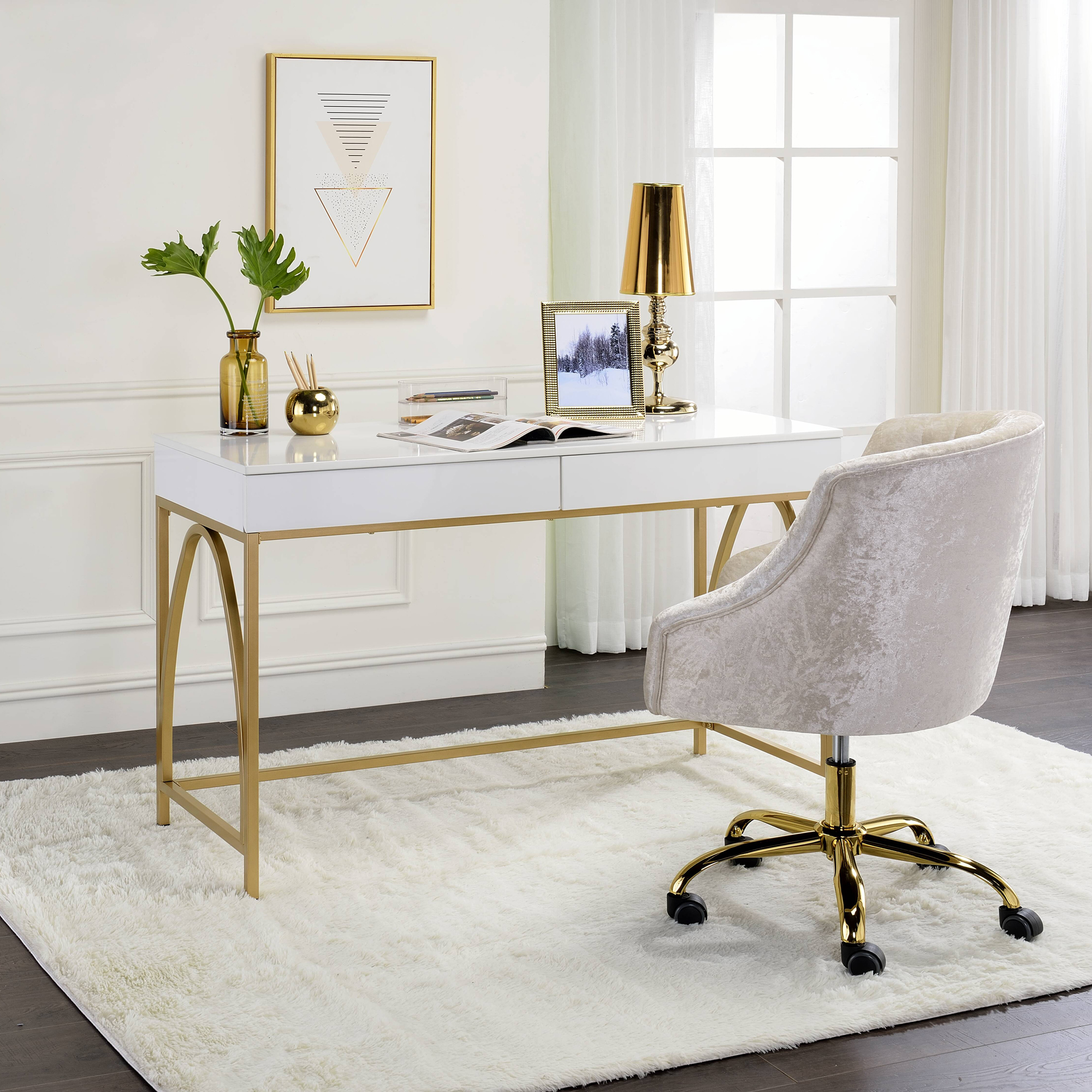 The Lightmane creates an environment you are comfortable to work at home. This writing desk is crafted with selected wood in white high gloss finish top and metal straight legs in gold finish. Also 2 storage drawers were included to store books, notebooks and pens for easy access while you work.