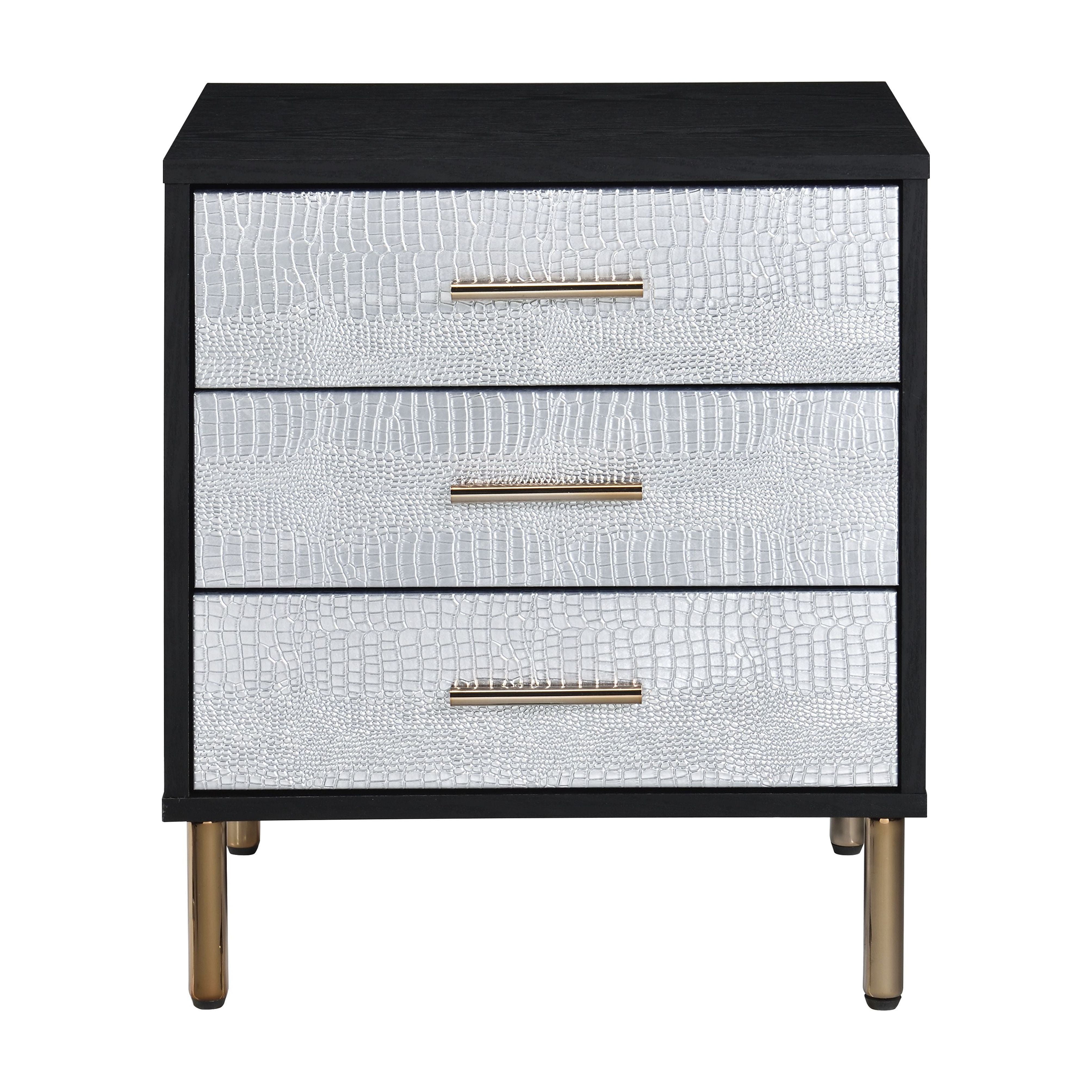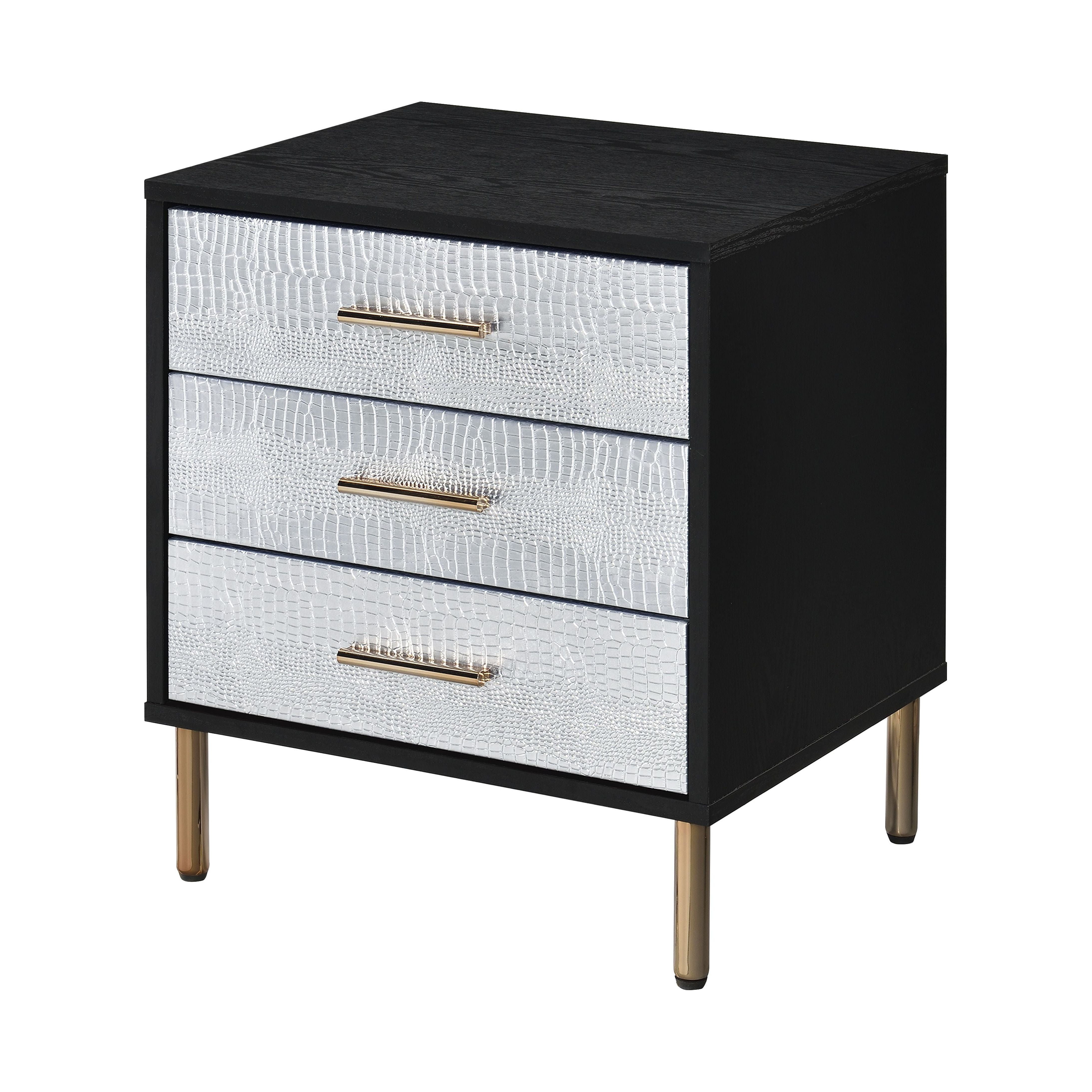 ACME Myles Nightstand, Black, Silver & Gold Finish AC00842