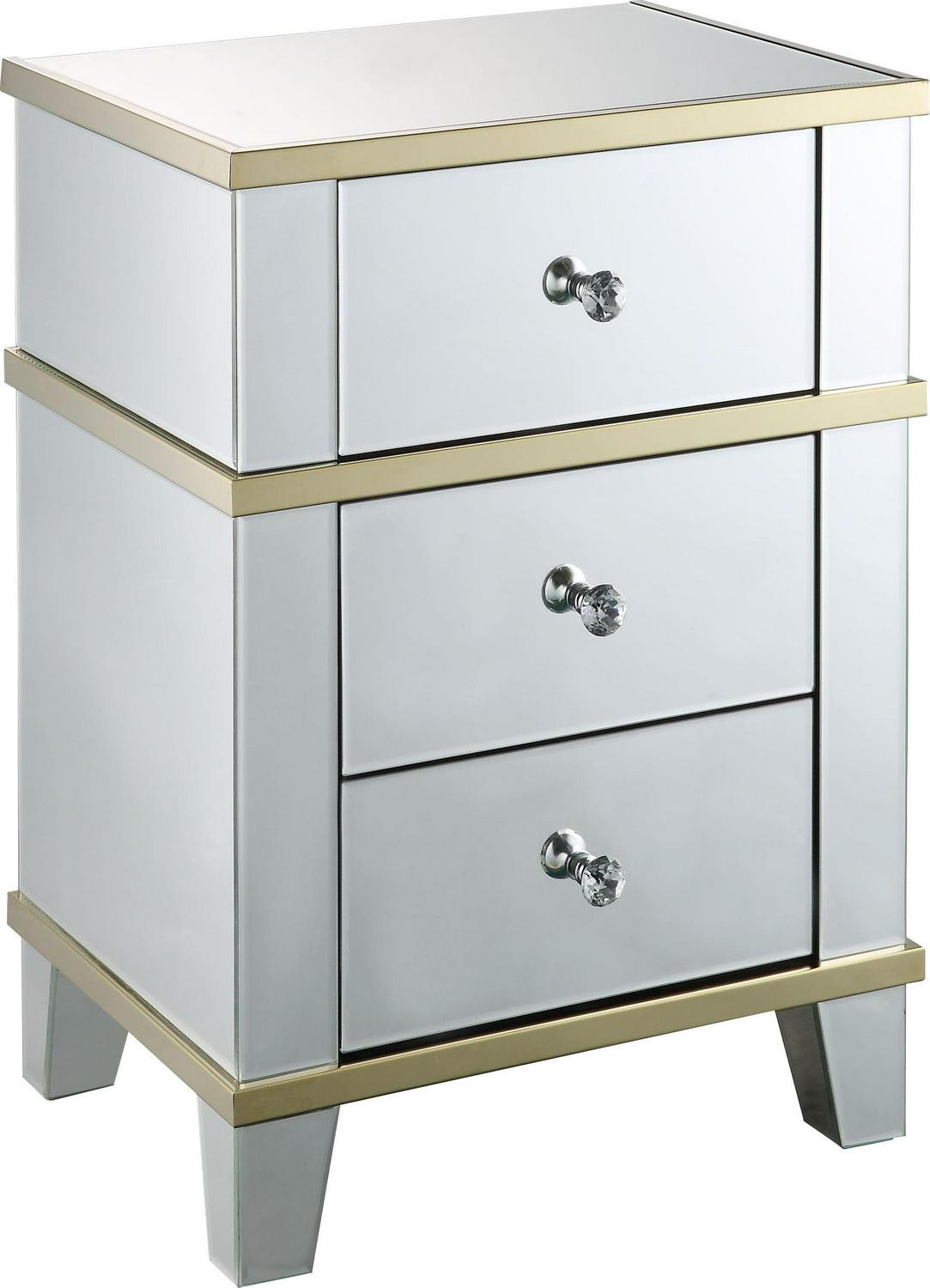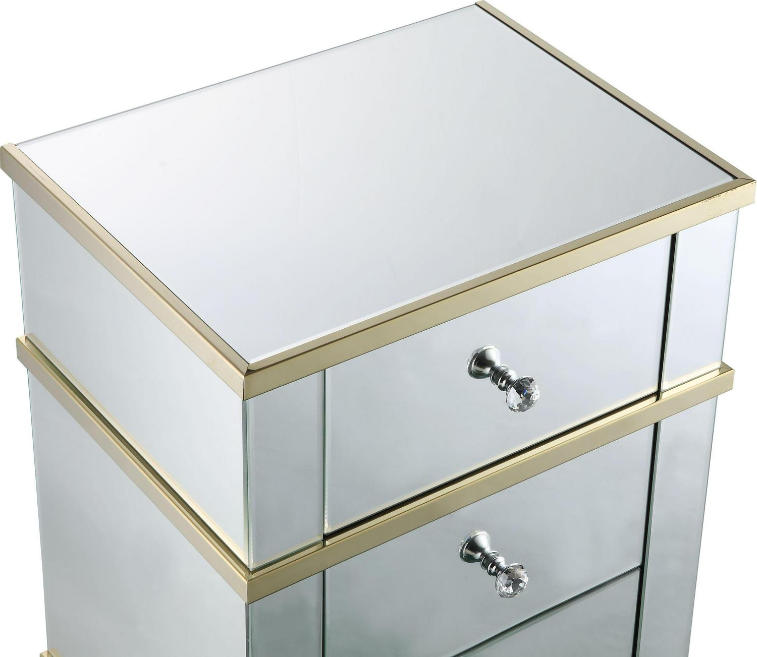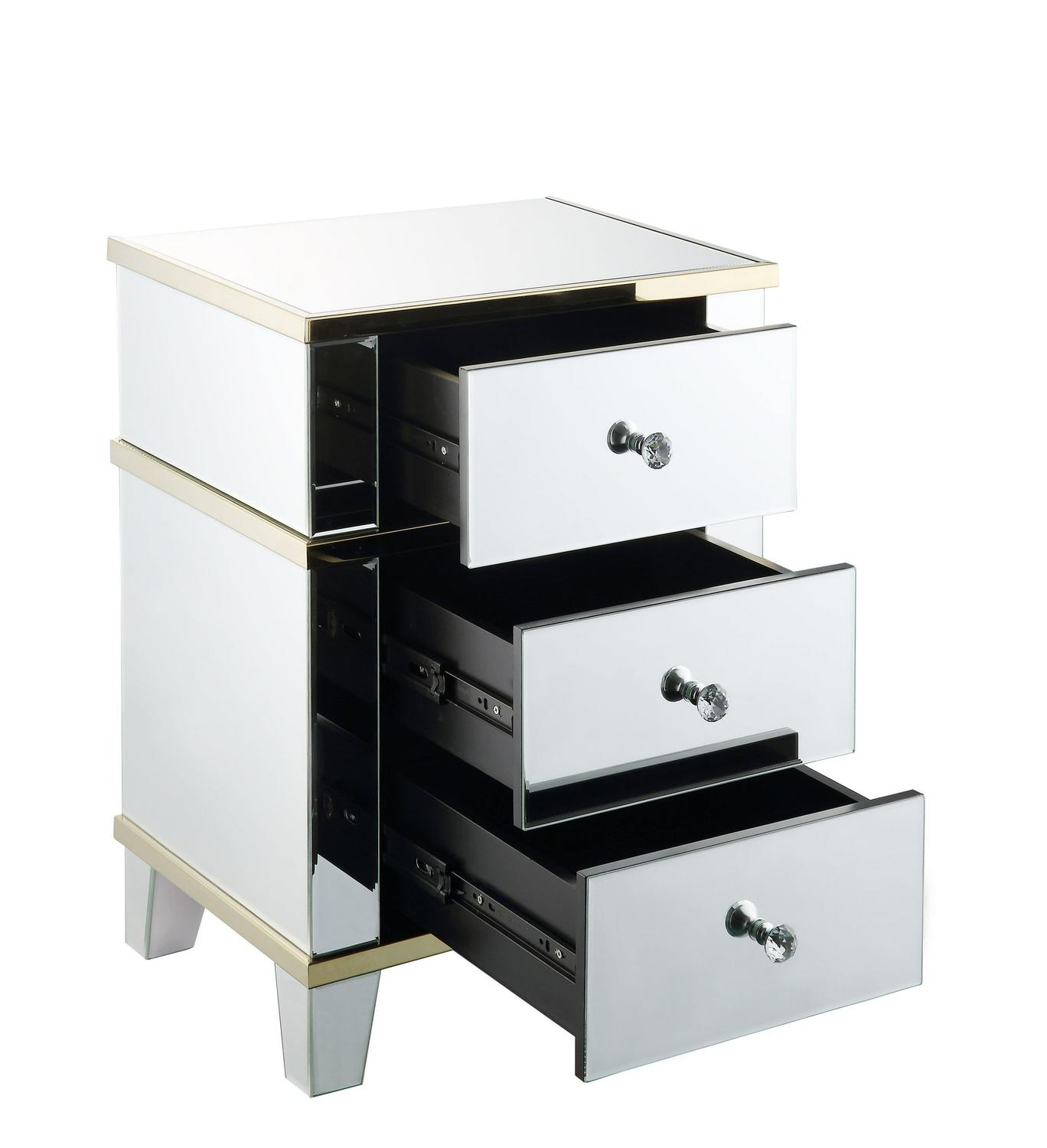 ACME Osma 3 Storage Drawers Nightstand in Mirrored and Gold