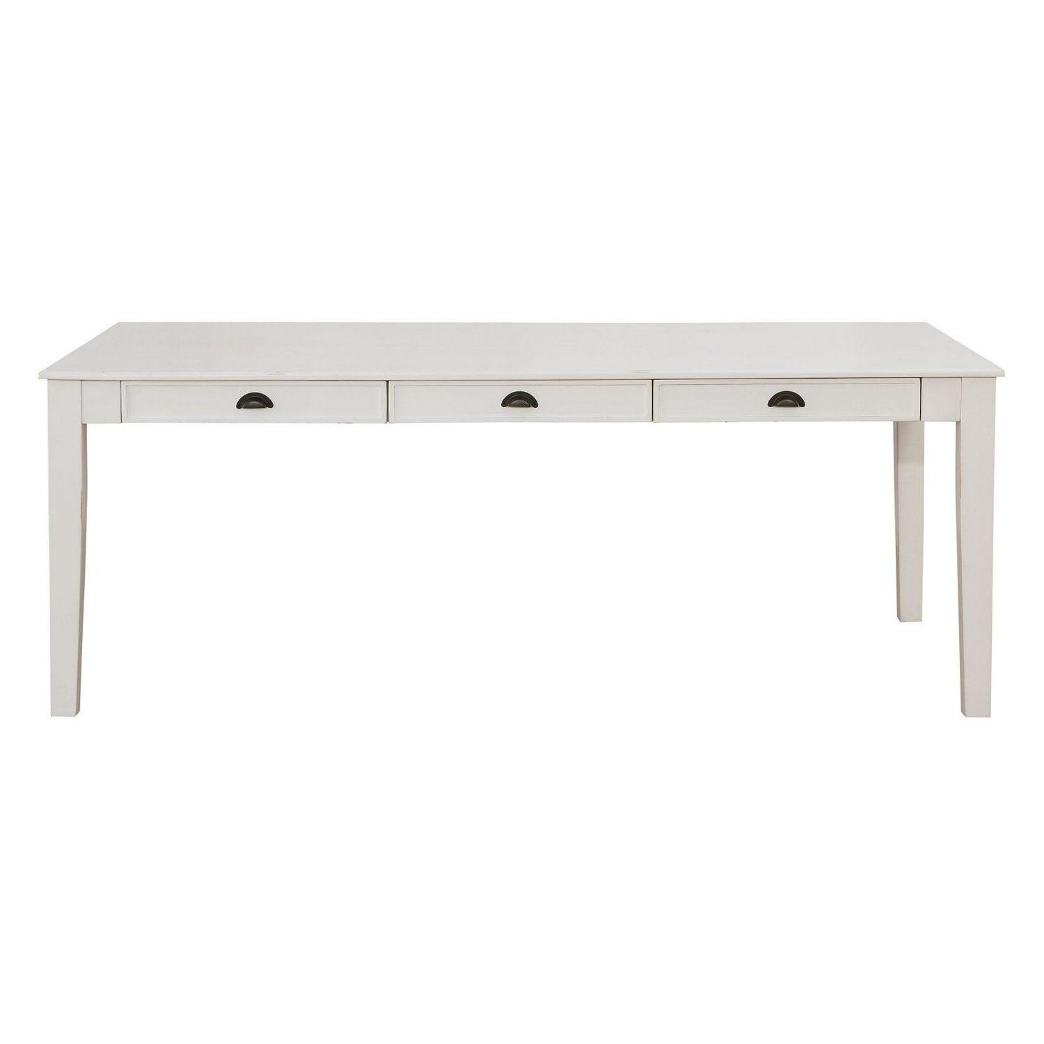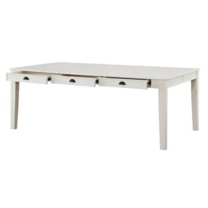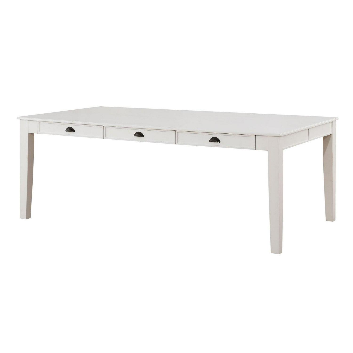 With its antique white finish, the Acme Furniture Renske Dining Table adds country charm to your dining room. Crafted of sturdy wood, this attractive dining table includes tapered legs for a stylish aesthetic. Six storage drawers with metal hardware make it a functional addition to any dining space or kitchen.