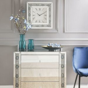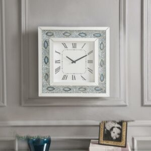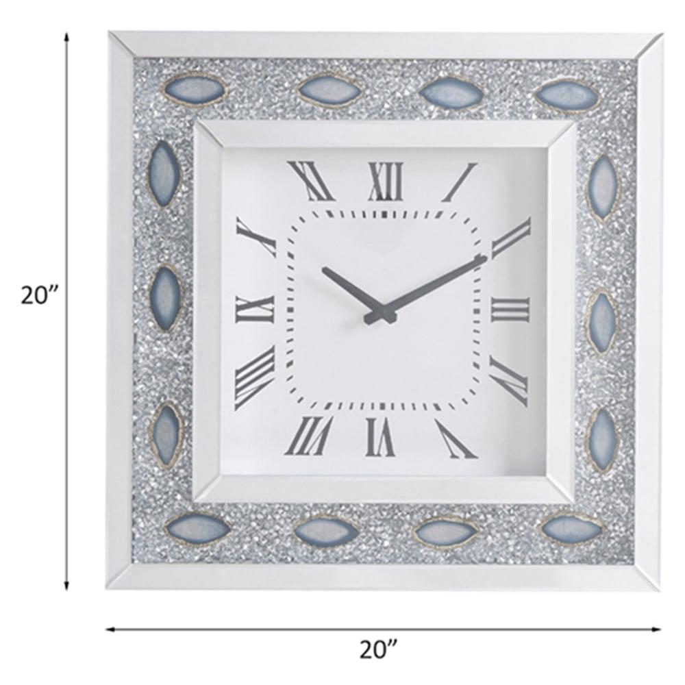 Add elegance to any room with this wall clock. This chic square clock features a round crystal and mirror trim which is sure to satisfy the most particular of tastes. The beautiful and contemporary wall clock will add an often-overlooked decorative touch to any room.