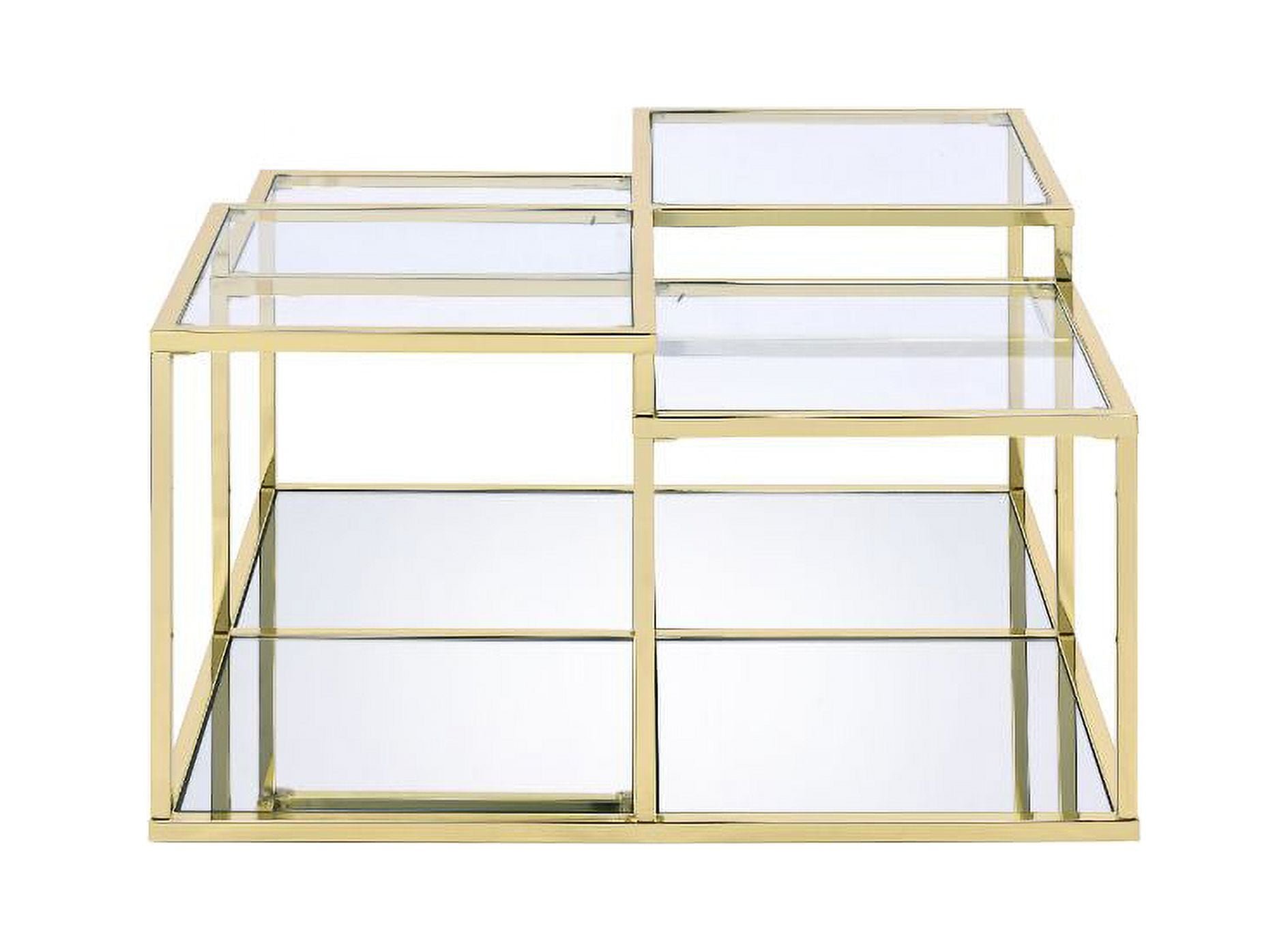 ACME Uchenna Glass Top Coffee Table with Metal Frame in Clear Glass and Gold