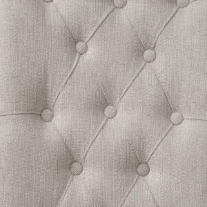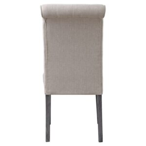 Beige linen upholstery fully covers its wooden frame for a light and airy feel. The side chair boasts a rolled back design with tufted button details, which embodies a timeless look with a classic flair. Wooden legs in a muted gray finish lend a bit of natural charm. A perfect addition to any dining table, Yabeina Side Chair gives you and your guests a sink-in comfort.