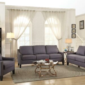 The Zapata contemporary sofa collection is covered with selected grey linen fabric. It features decorative nail head trim and loose seat and backrest cushions with thick padding. The cover upholstery is comfortable and comes with clean lines design. This set is sure to be a great addition to any living room.