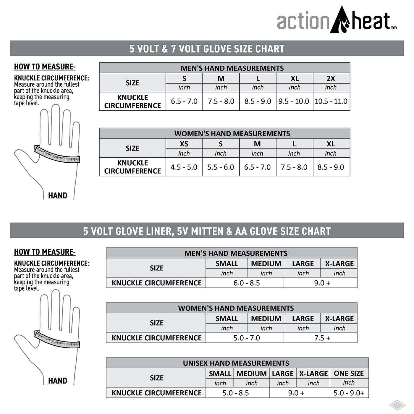 – Includes: (2) ActionHeat Heated Gloves with Heated Fingers, (2) 5V 3000 mAh. Batteries, (1) 24″ Dual battery charger kit