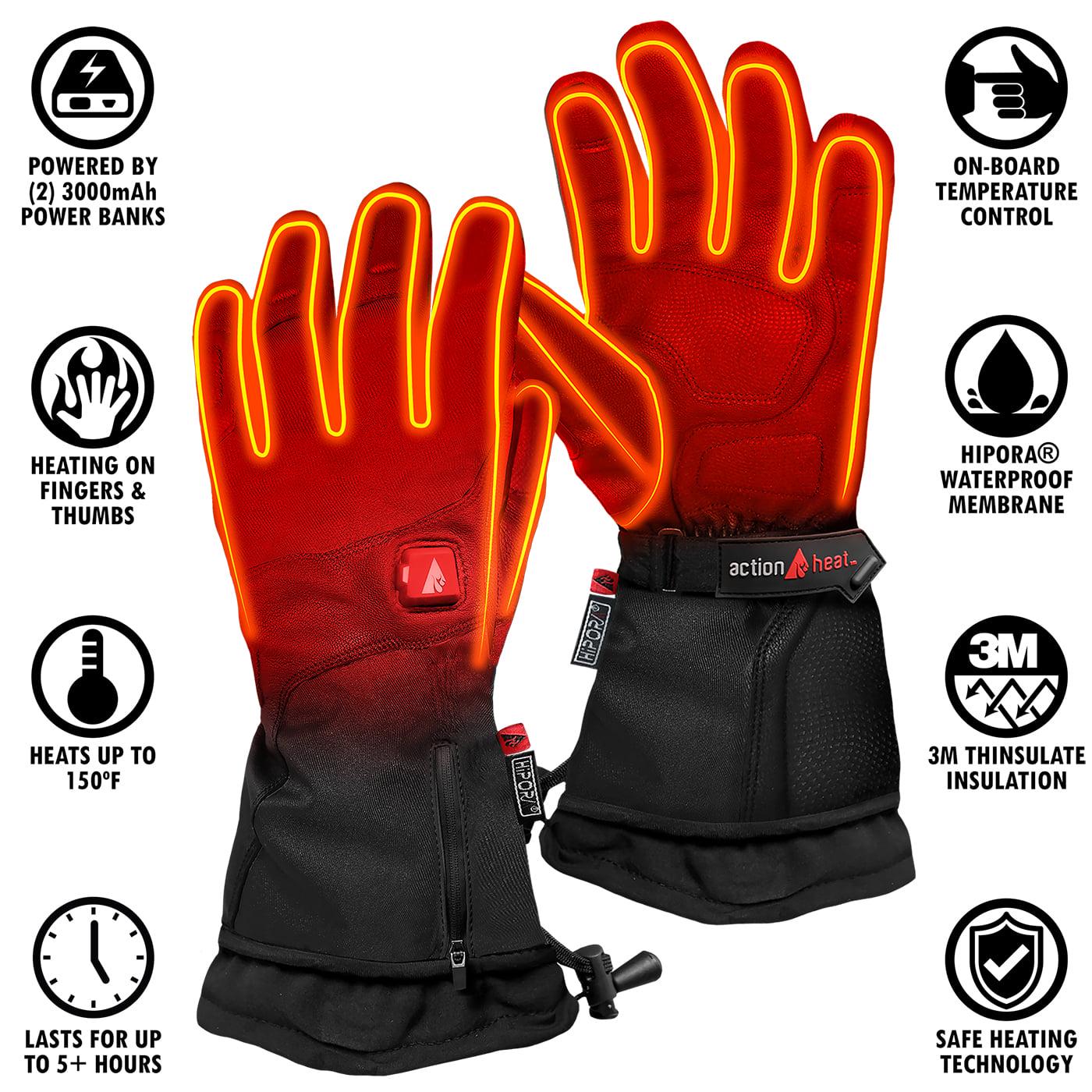The ActionHeat 5V Premium heated gloves feature an innovative design and weathertight construction to provide a long-lasting, warm and comfortable experience. The ActionHeat 5V Premium heated gloves provide finger and thumb heating elements and feature Thinsulate insulation for maximum heat retention. These premium gloves are guaranteed to keep your hands warmer no matter what the weather conditions. Heats up to 150F for up to 5+ hours.