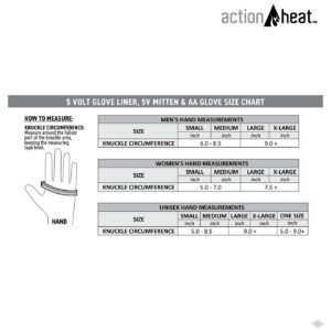 – Includes: (2) ActionHeat Heated Glove Liners W/ Heated Fingers, (2) 5V 3000mAh Batteries, (1) 24″ Dual battery charger kit