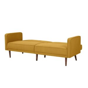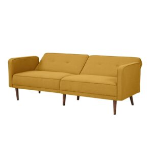 A&D Home Moreno Polyester Split Back Convertible Sofa, 3 Person Tufted Couch, Yellow