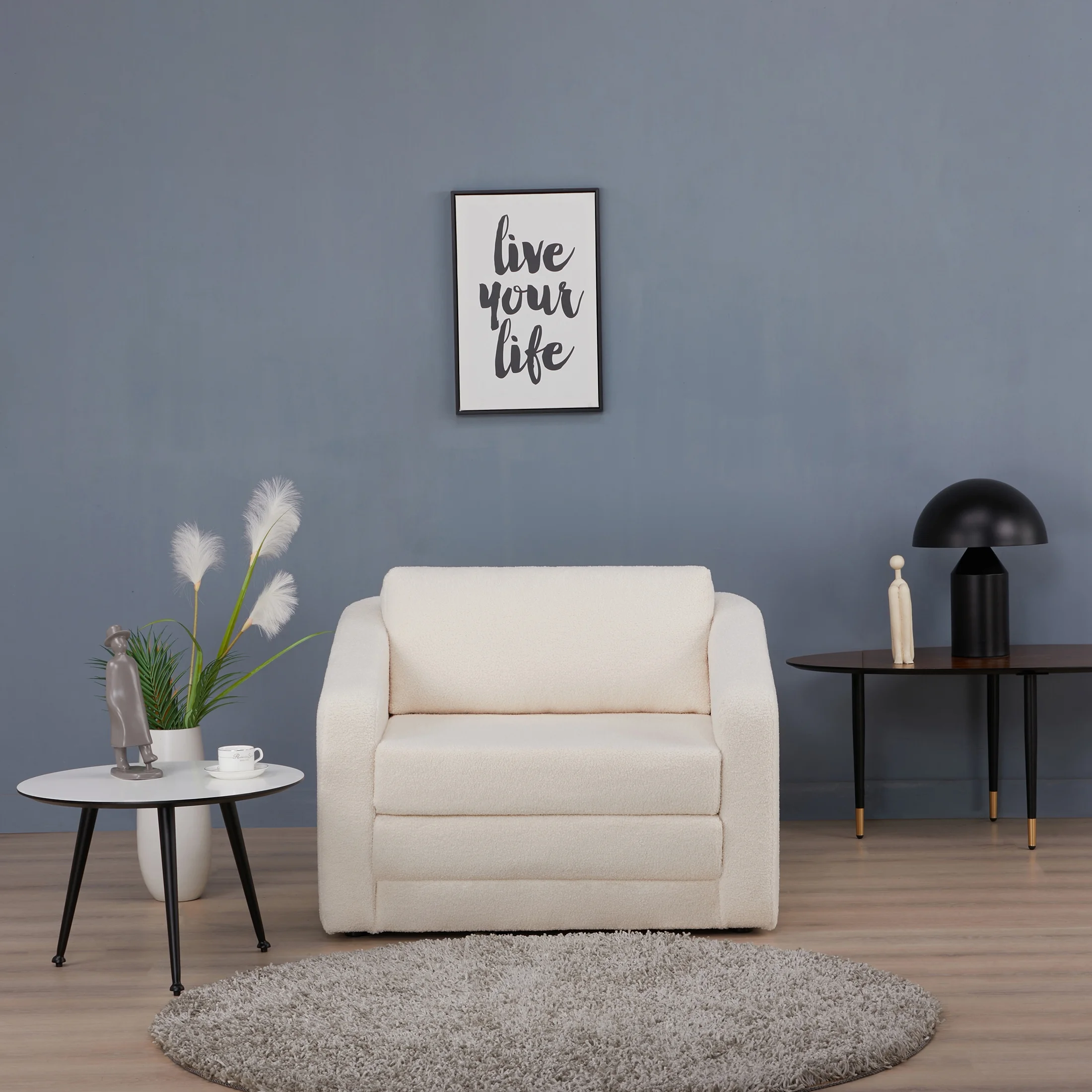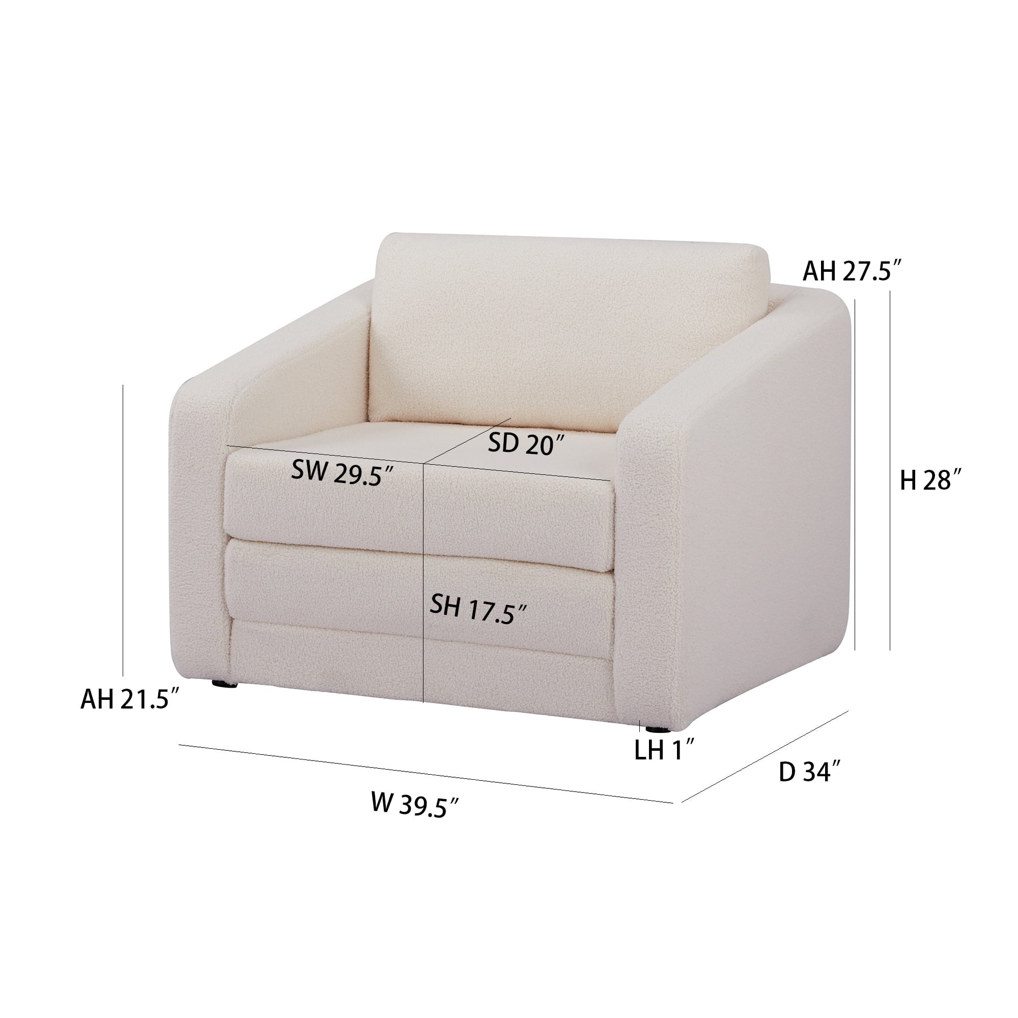 Easily converts from a chair into a comfy 30″ x 78″ sleeper bed for guest Made with a naturally strong pine wood frame for long-lasting durability Upholstered in a 100% polyester sherpa fabric, soft and durable for everyday use, available in Ivory or Gray