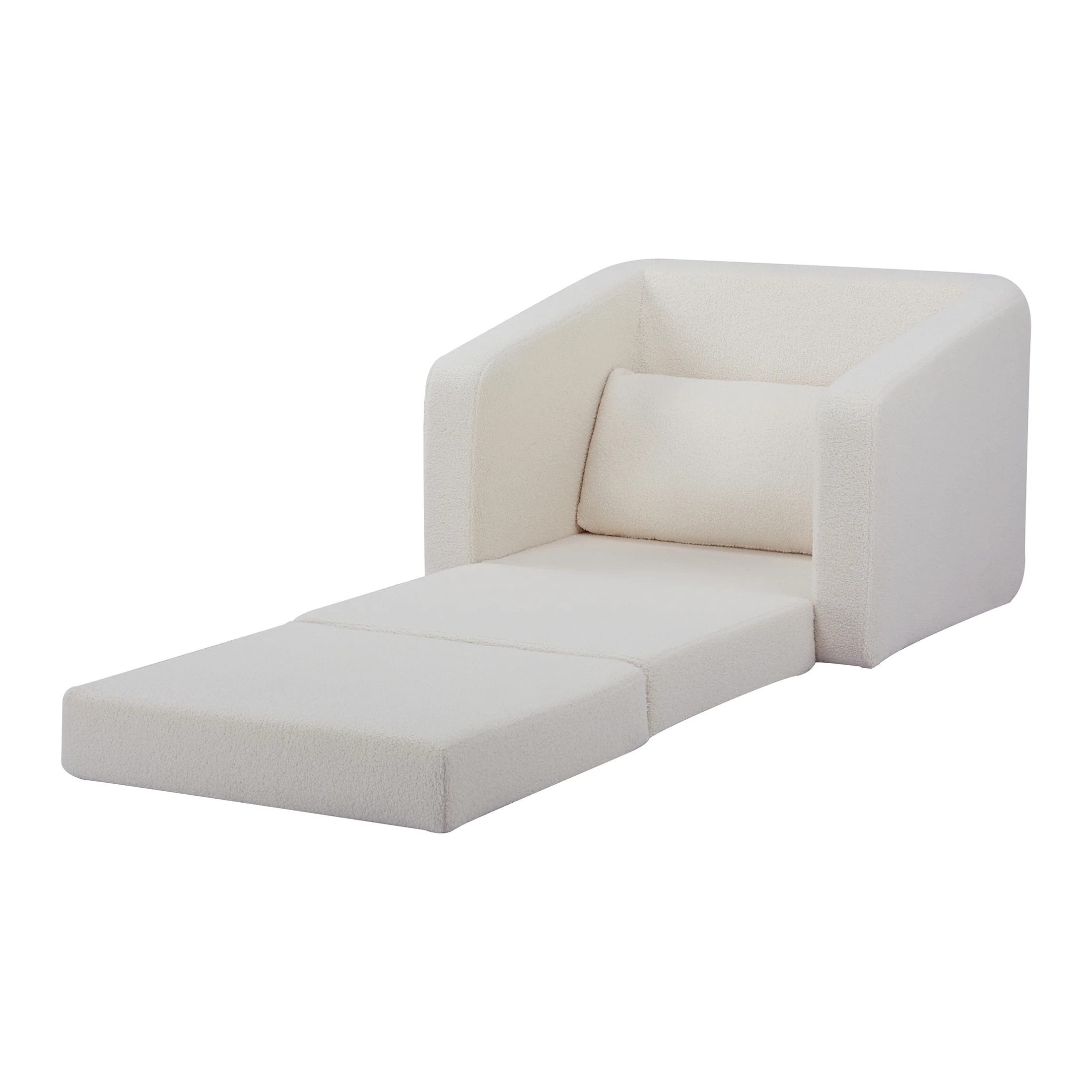 A&D Home Pala Polyester Sherpa Convertible Chair, Compact Sleeper, Ivory