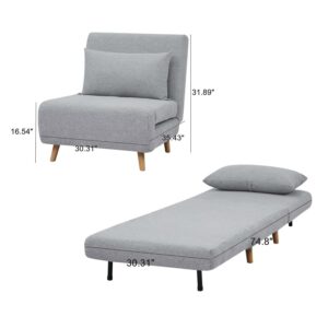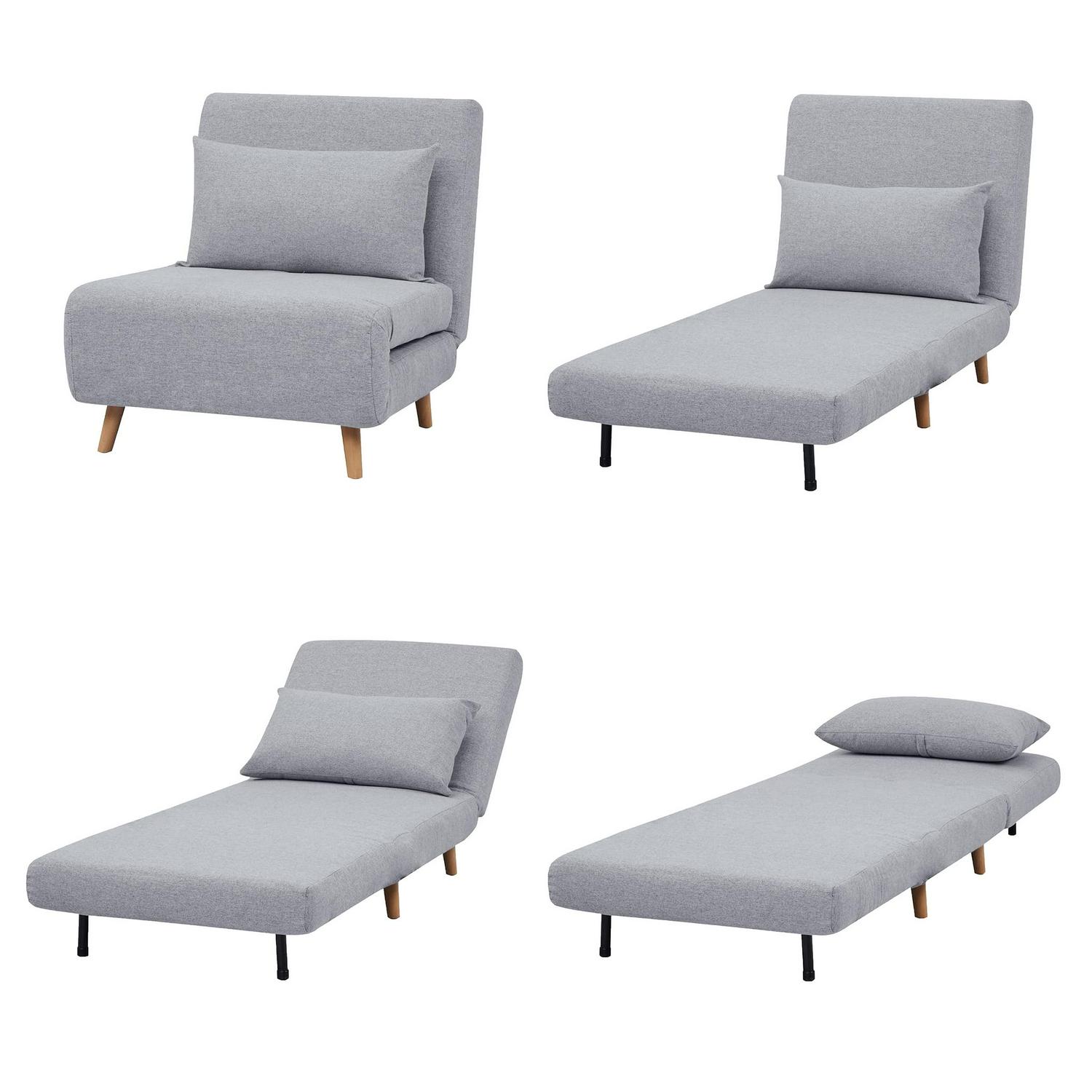 A&D Home Tustin Polyester Convertible Futon Chair, Light Gray