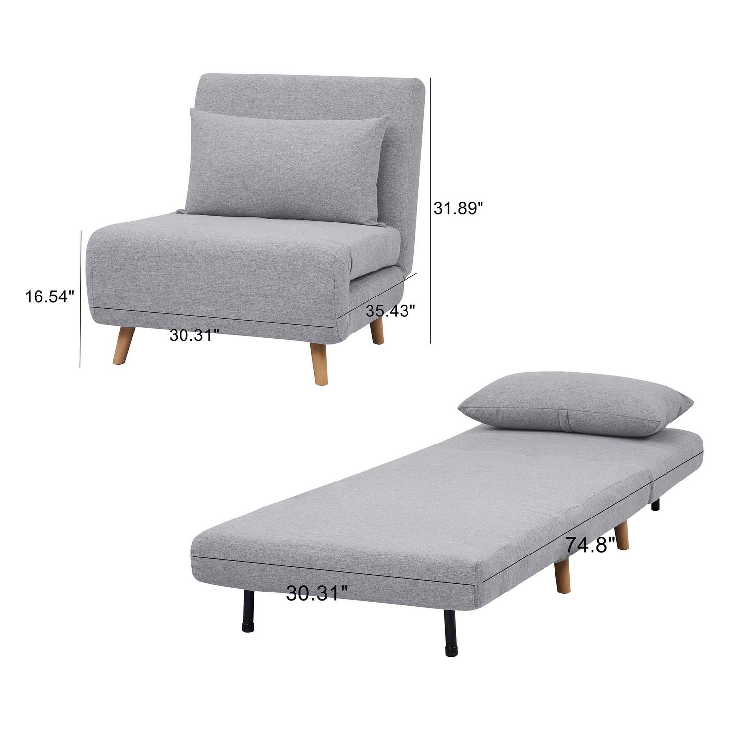 – Includes 1 matching pillow, convertible chair, legs, and hardware
