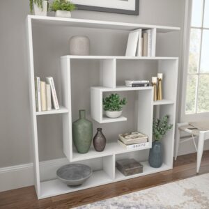Get lost within a new era of decor, that introduces a spectacular mesh of modern design and functionality. The Briscoe bookcase is an unmistakable statement of art, minimalism, and pure style. Featuring eight fully-functional shelves with built-in dividers, the possibilities are endless in regard to fashionable, yet spacious storage. This precisely crafted bookcase measures 49 inches in width, 51 inches in height, and a perfected 8.5 inches in depth, producing an unmatchable capability that would complement any home or office environment. Ada Home Decor Furniture 4 Tier Open Shelf White Briscoe Modern Bookcase would be final touch furniture for your space. Suitable for living room, study room, den, office, dining room.
