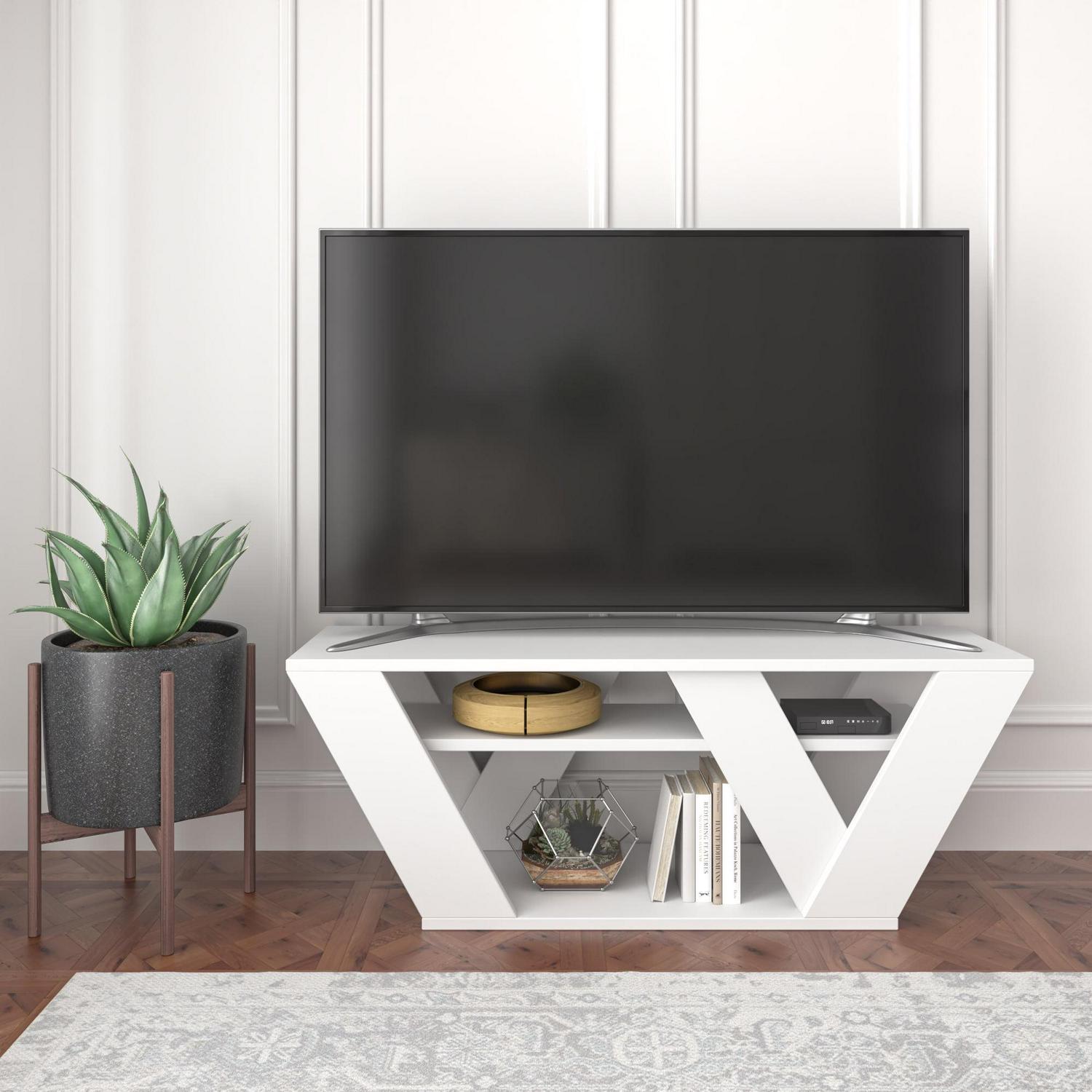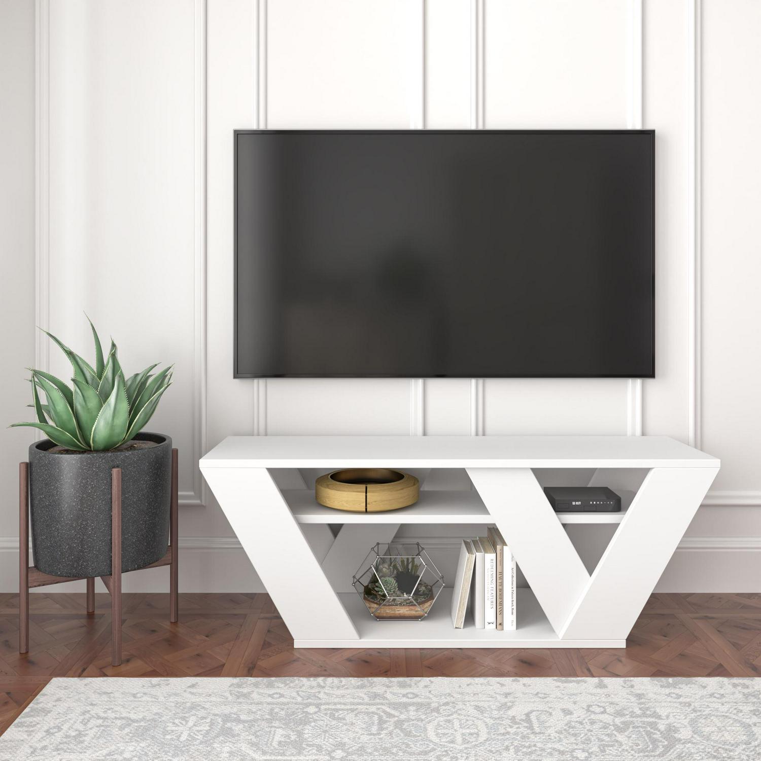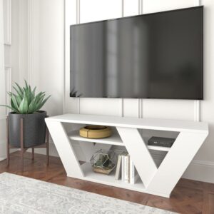 Ada Home Decor Furniture for TVs up to 48 2 Tier Open Shelf White Todd Modern TV Stand