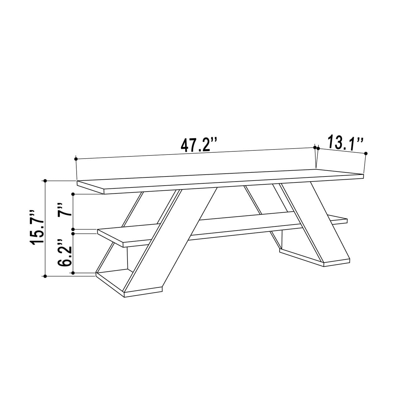 Created with durable materials, each shelf has a suggested weight of up to 20 lbs of your favorite books, pictures, and ornaments Guaranteed simple and quick assembly with included hardware and guided instructions Made with compressed engineered wood for strength and durability, with a long-lasting melamine finish on all sides that is moisture and stain resistant Accommodates most flat panel TVs up to 53″ Easily store all your gaming consoles and accessories, components for your television and board games or books Helping your room stay clutter free with open shelves Perfectly blends with any style of home decor A beautiful modern style with a primary ivory shade Care Instructions: Wipe with a damp cloth Dimensions: 15.75” H x 47.24” W x 13.19” D Please Note: Due to differences in computer monitors, some product colors may vary slightly.
