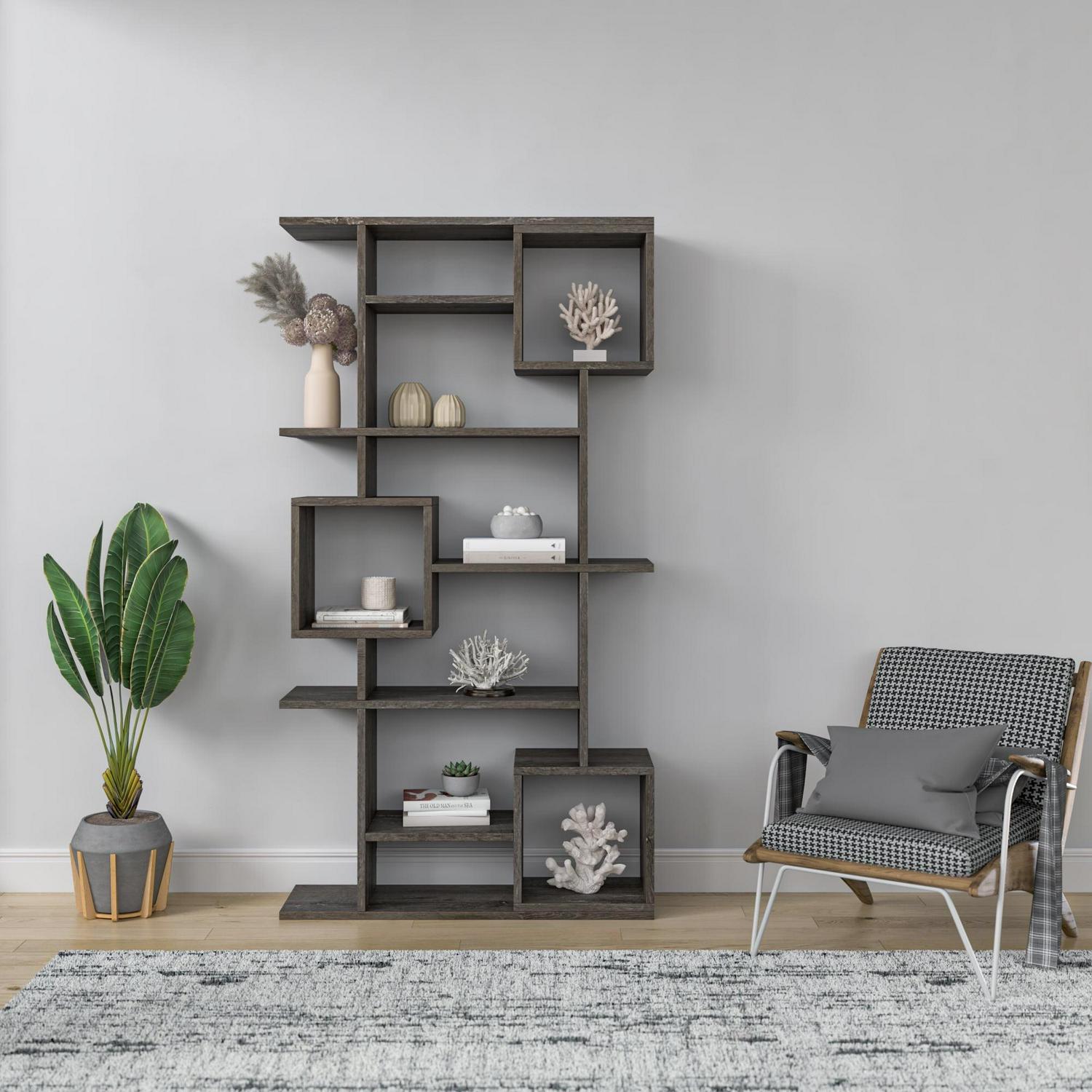 Ada Home Decor Furniture Multiple Tier Open Shelf Dark Brown Barrett Modern Bookcase