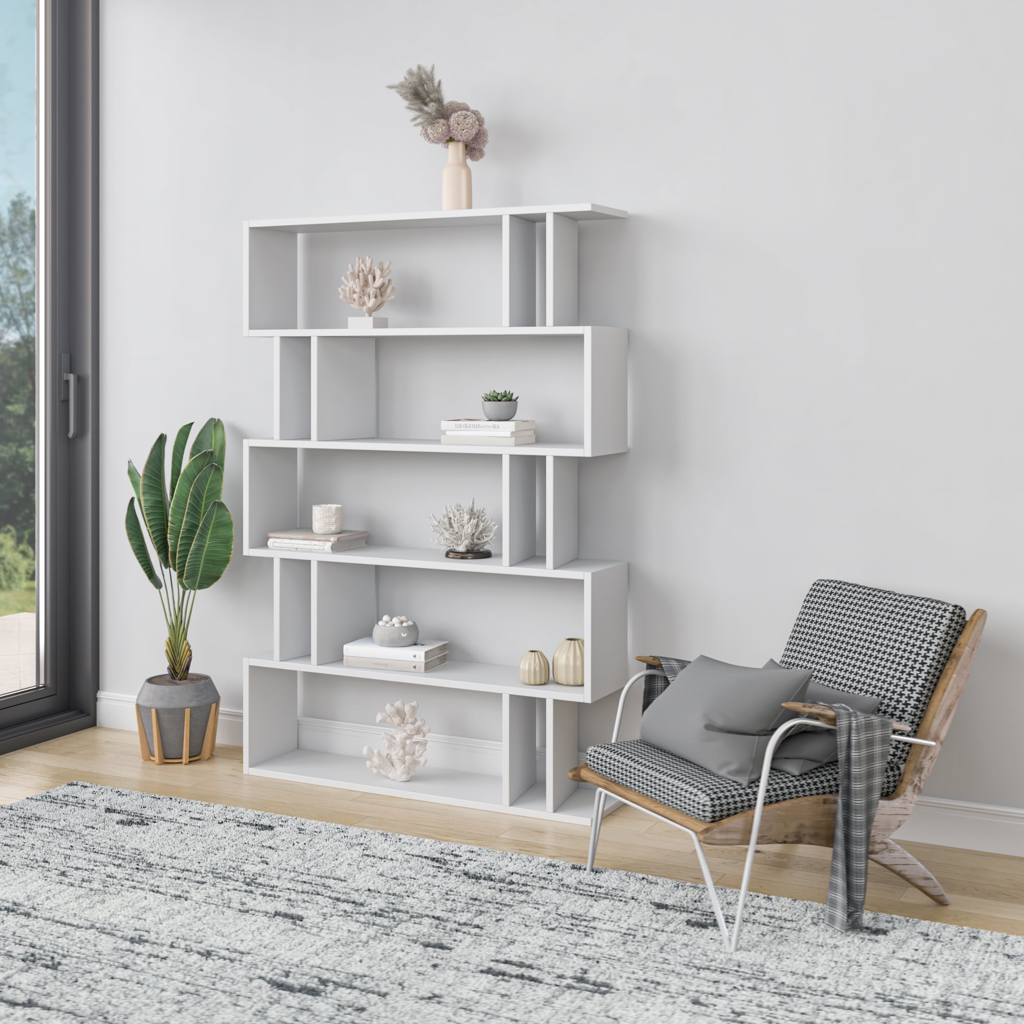 Perfectly blends with any style of home decor Created with durable materials, each shelf has a suggested weight of up to 20 lbs of your favorite books, pictures, and ornaments Guaranteed simple and quick assembly with included hardware and guided instructions A beautiful modern style with a primary white shade Made with compressed engineered wood for strength and durability, with a long-lasting melamine finish on all sides that is moisture and stain resistant A Good fit for your living room, study room, den, office, dining room and more 5 Shelf Berwyn bookcase is perfect for your storage baskets and displaying collectibles and artworks Care Instructions: Wipe with a damp cloth Overall Product Dimensions: 63.39” H x 43.31” W x 10.04” D Assembled Weight: 70.49 lbs Please Note: Due to differences in computer monitors, some product colors may vary slightly.