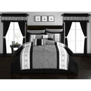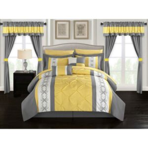 Adara 20 Piece Comforter Set Color Block Pinch Pleat Pintuck Design