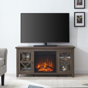 Addison&Lane Colton Log Fireplace TV Stand with 2 Doors for TVs up to 55 , Alder Brown
