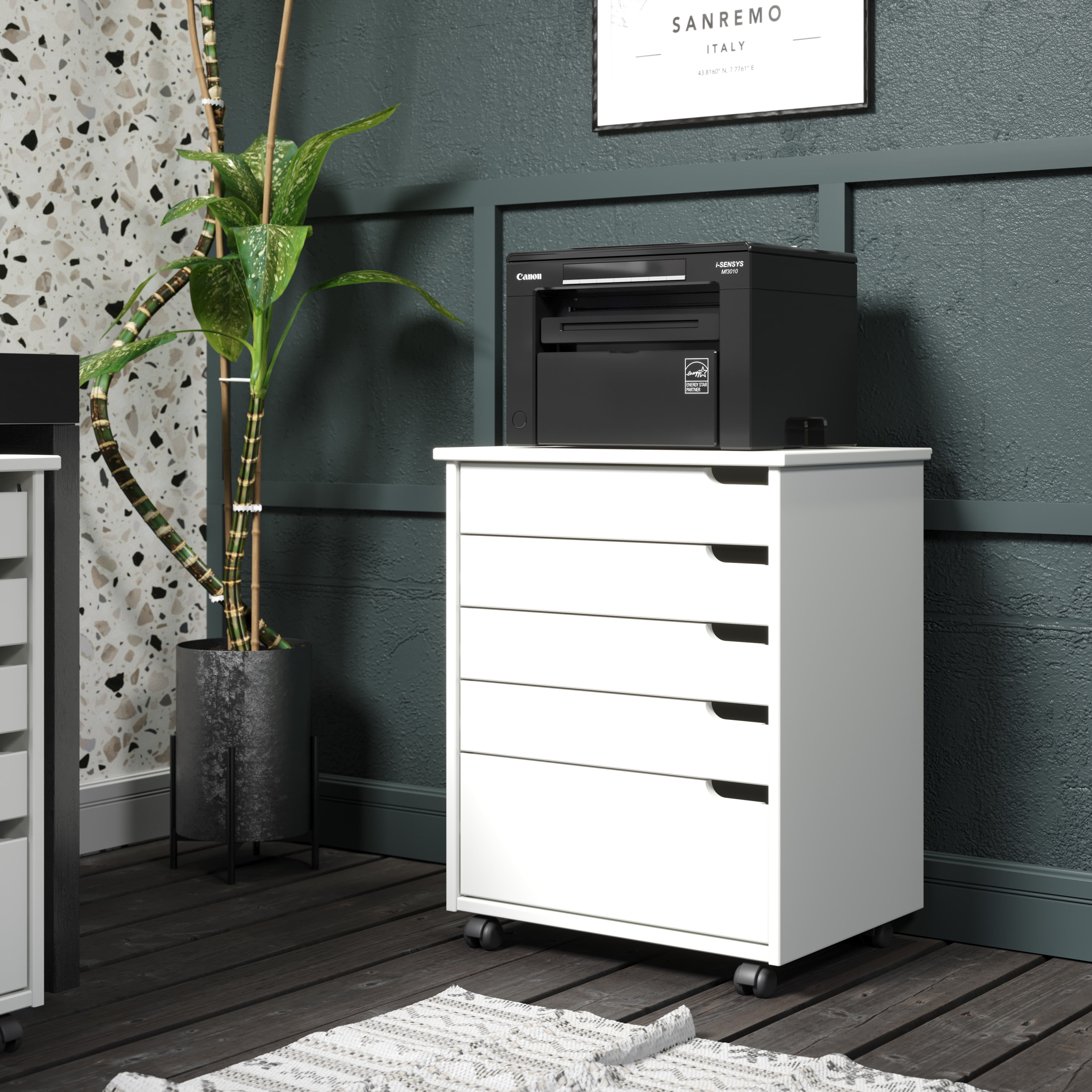 Jela Euro Solid Wood 4+1 Drawer Wide Roll Cart in White