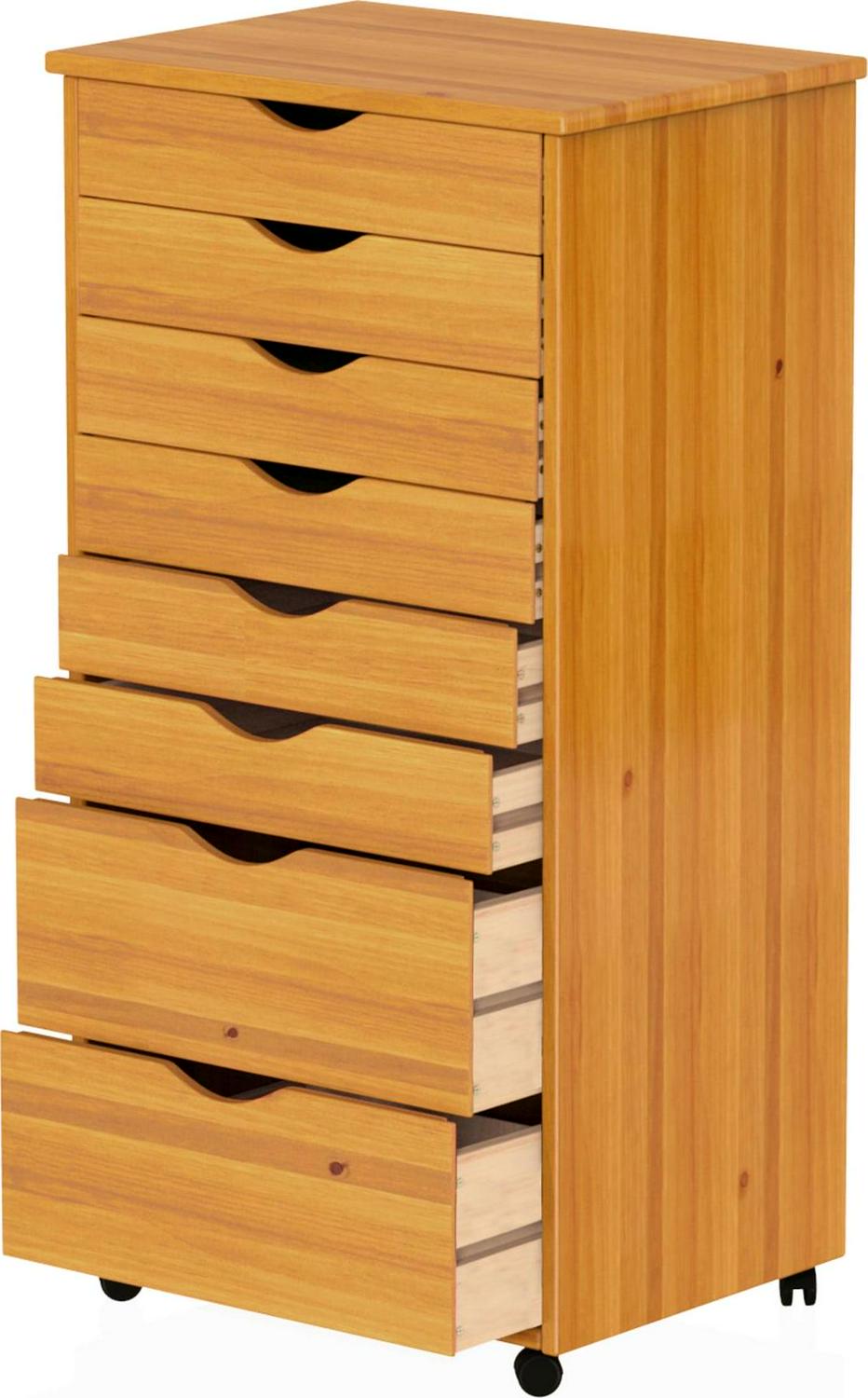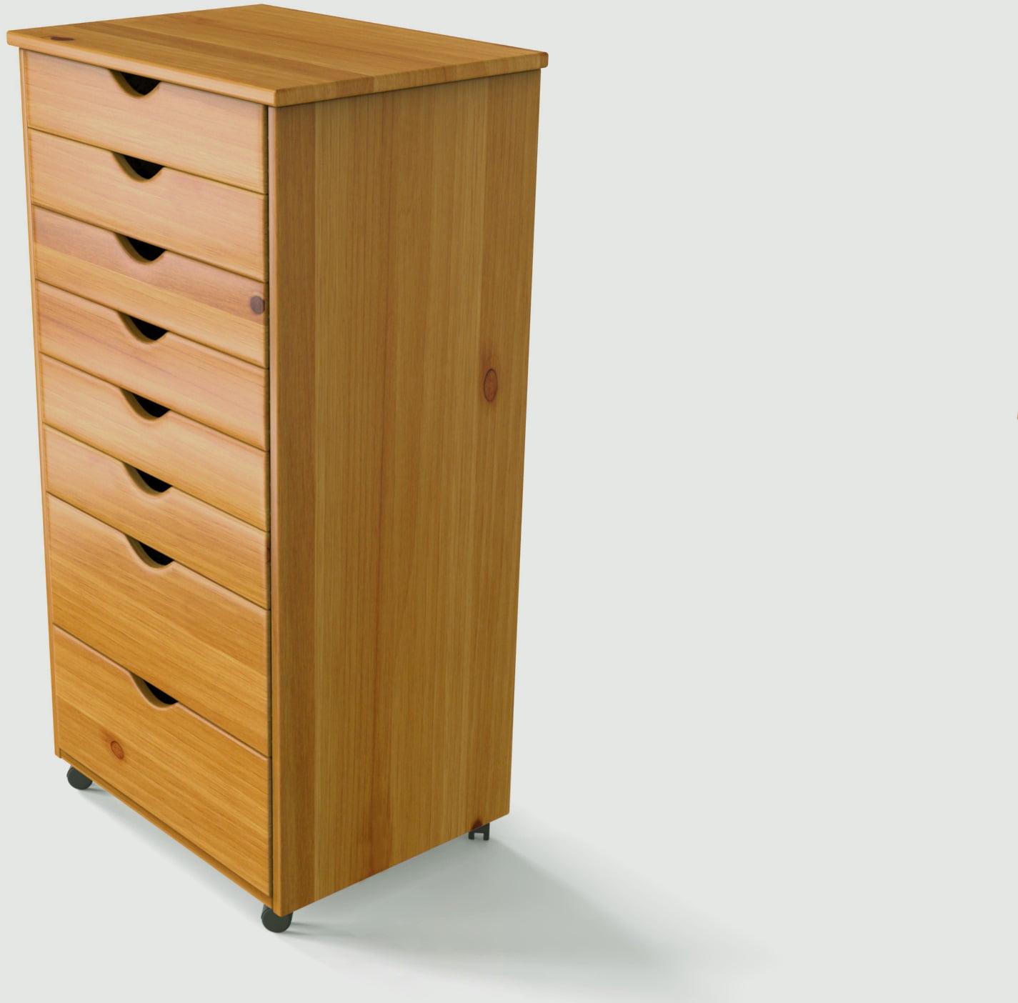Adeptus Original Roll Cart, Solid Wood, 6+2 Drawer Extra Wide Roll Cart, Med Pine