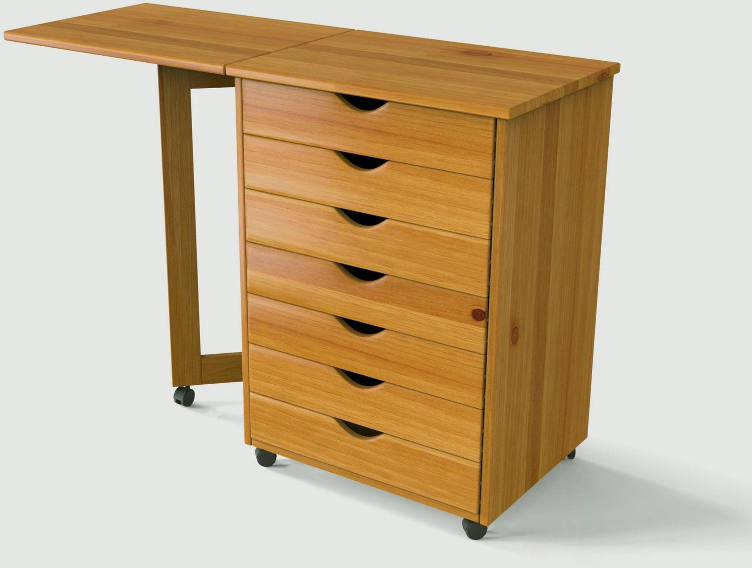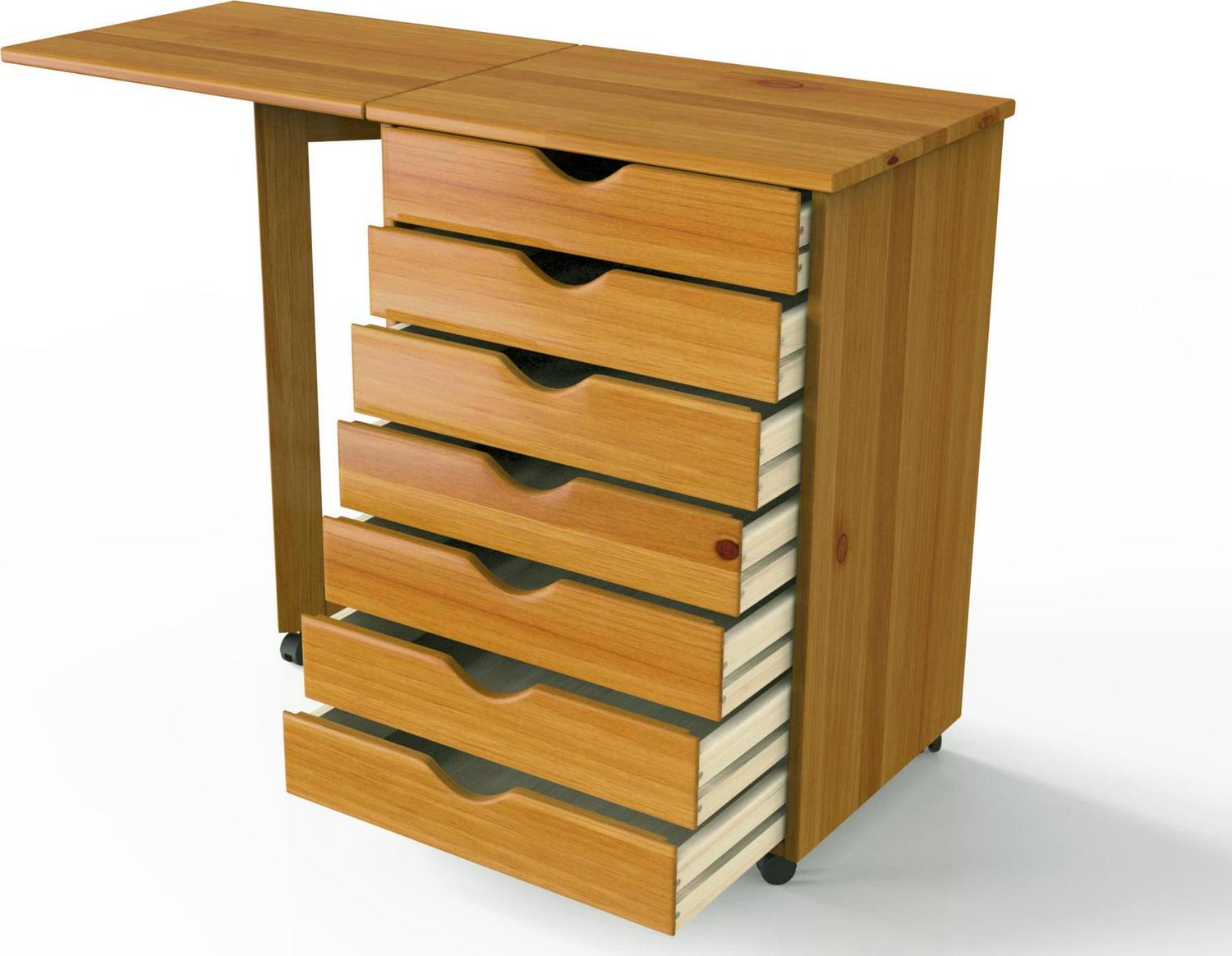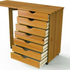 All Solid Wood Construction. 7 drawers holds ream of paper or drill. Perfect for scrapbooking, project rooms, kitchens, garage or office. On wheels. Drop Leaf 20.75″ W x 15.35″ D. With drop leaf raised: 41.6″.