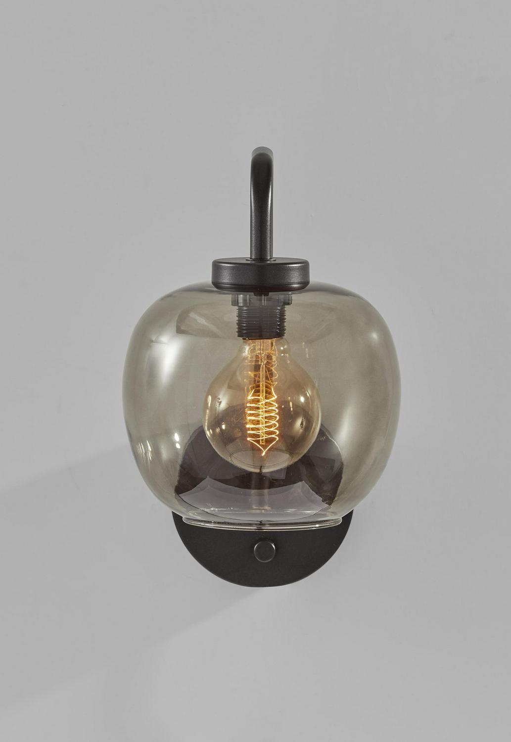 Adesso Ashton Wall Lamp Matte Black Smoked Glass