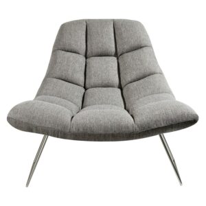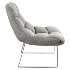 The Bartlett Chair makes comfortable look stylish! This cozy chair is meant for lounging, as it was made with an extra focus on comfort. Finished off with a slim, brushed steel frame and soft, textured grey fabric, this chair is also a great decorative accent to a modern-chic inspired room. The light grey textured fabric is 100% polyester. With a seat width of 40″, a seat depth of 17″ and a seat back height of 24″, this chair has plenty of room for relaxing. Overall dimensions are 40″W x 33″D x 33″H.
