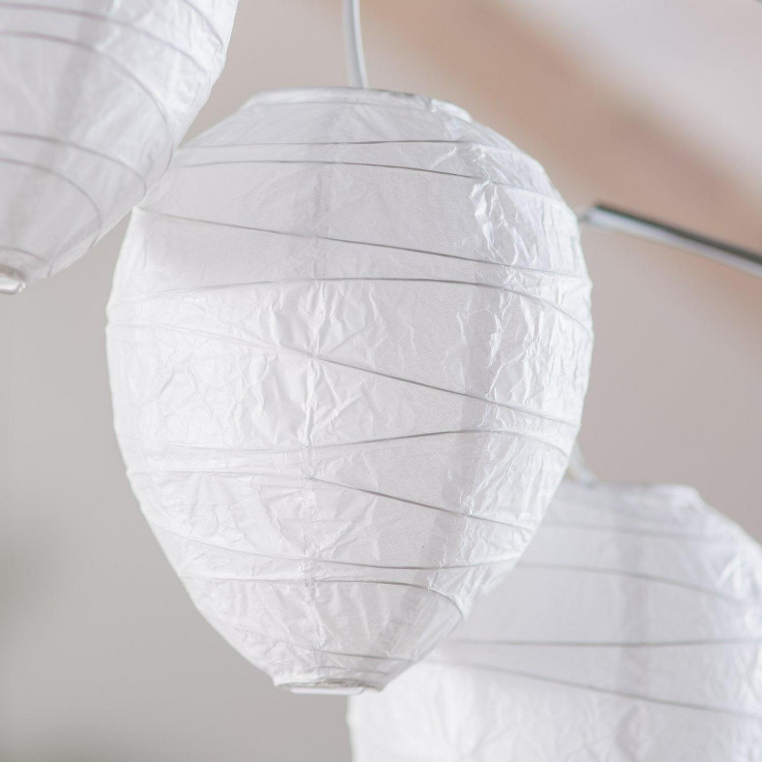 - Includes three 8-inch diameter white beehive paper lantern shades