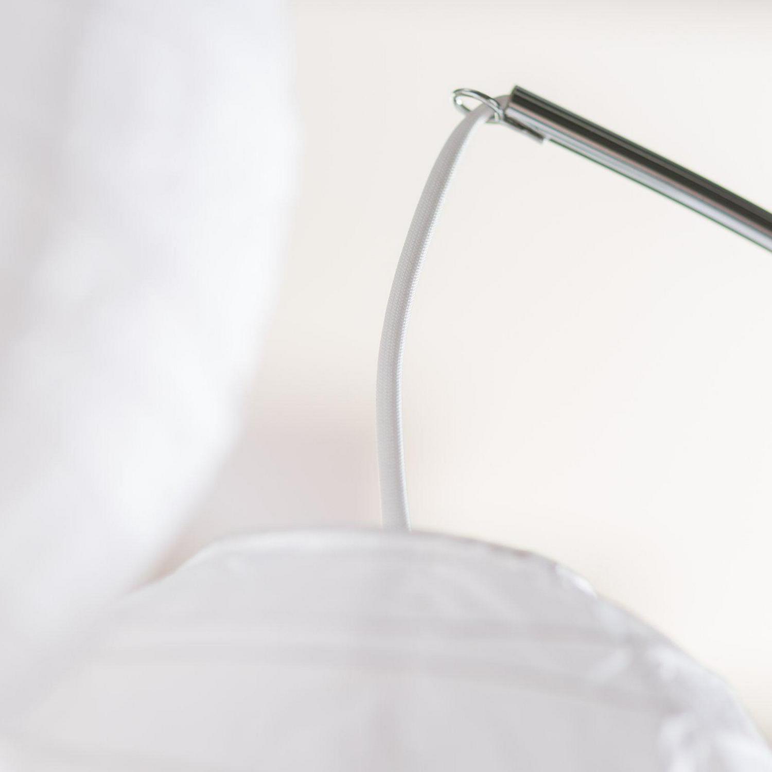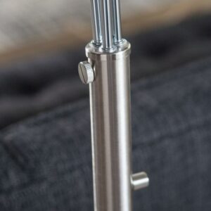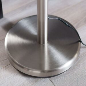 – Curved metal pole base with satin-steel and chrome finish