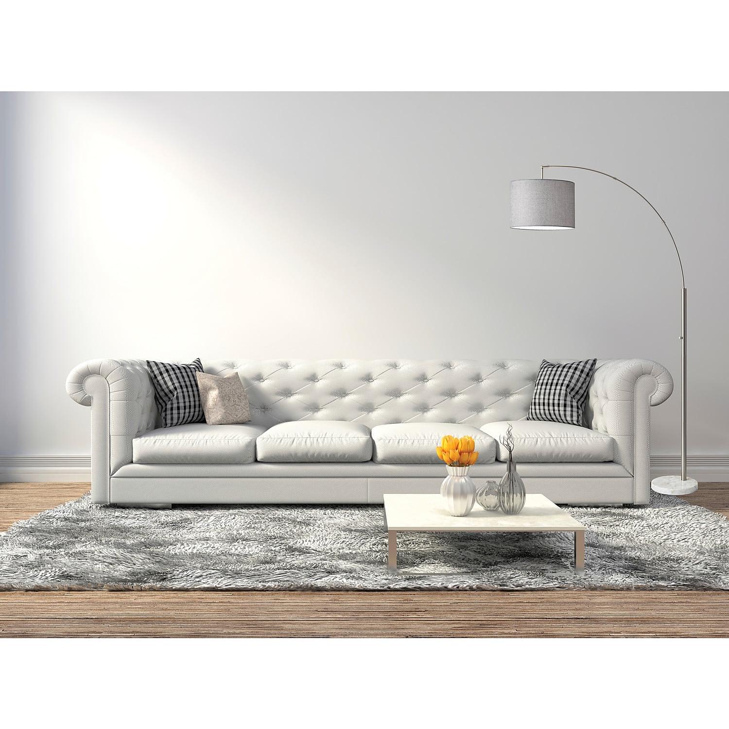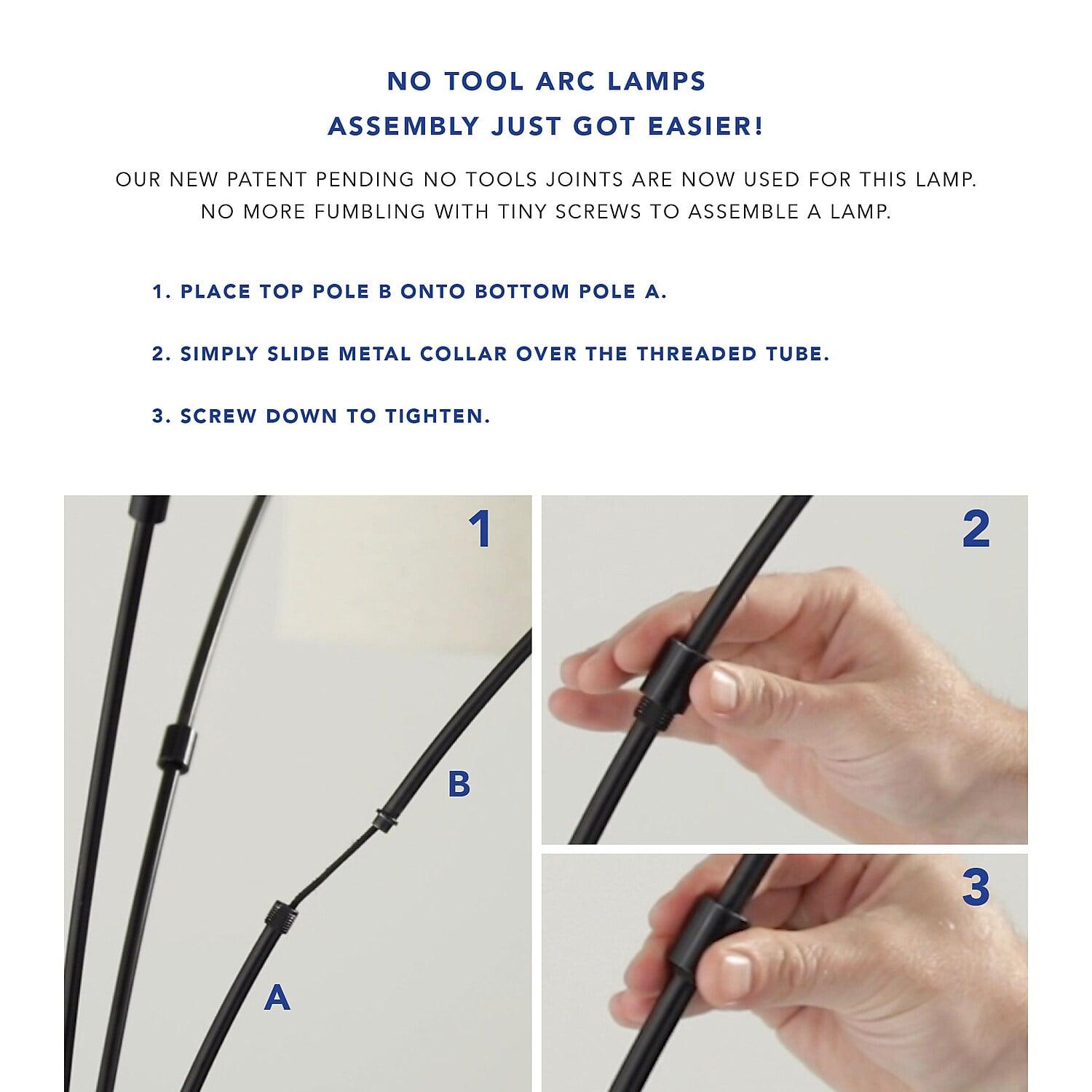 A smart and stylish way to light up a seating area, the Bowery Arc Lamp provides overhead lighting that can be controlled with an adjustable shade. Aside from functional assets, an brushed steel finish is paired with a white marble base to display striking style. An 100 Watt bulb shines beautifully through a grey tweed-like fabric shade. An on/off rotary switch is placed conveniently on the pole. This lamp has a clear cord and is smart outlet compatible. Bulbs are not included.