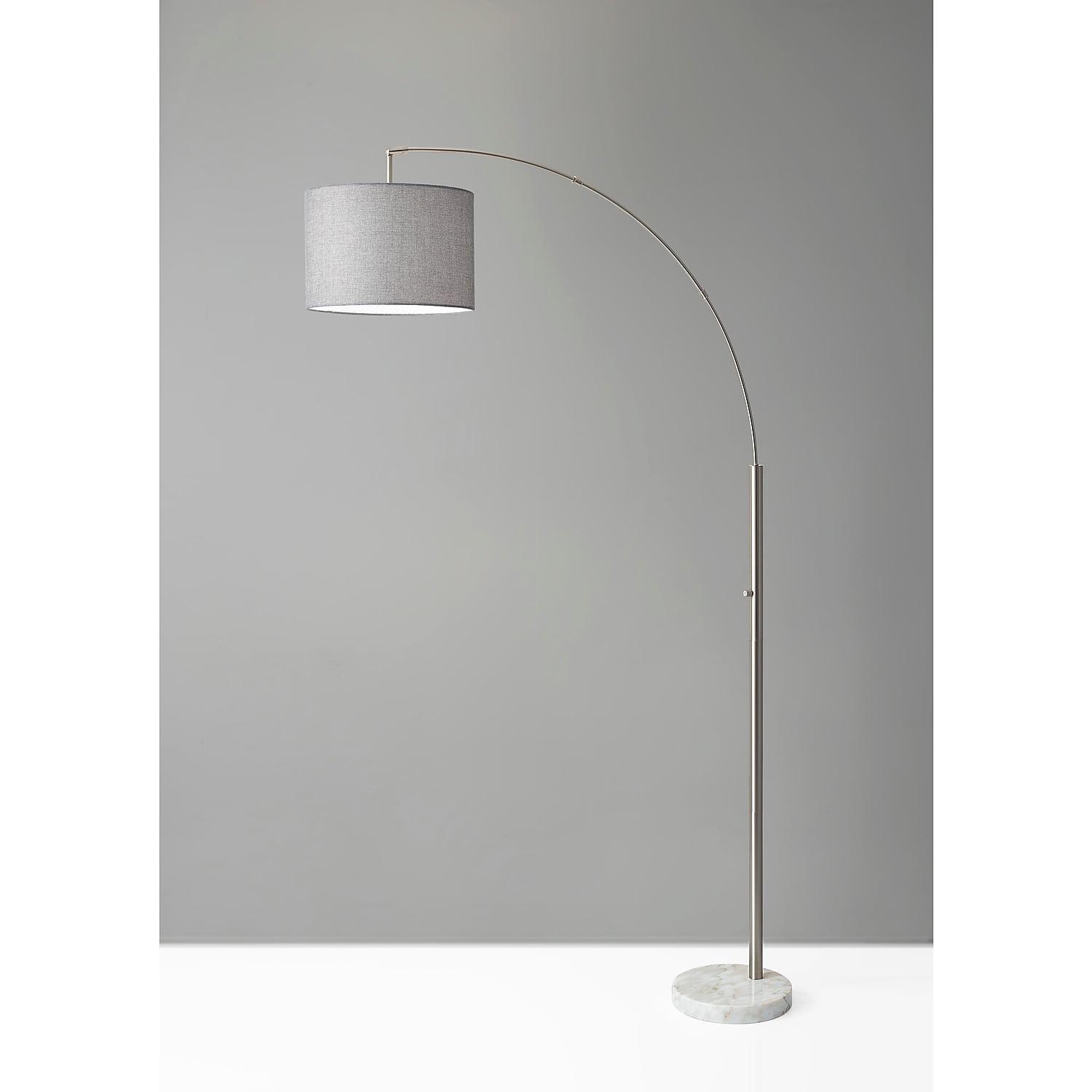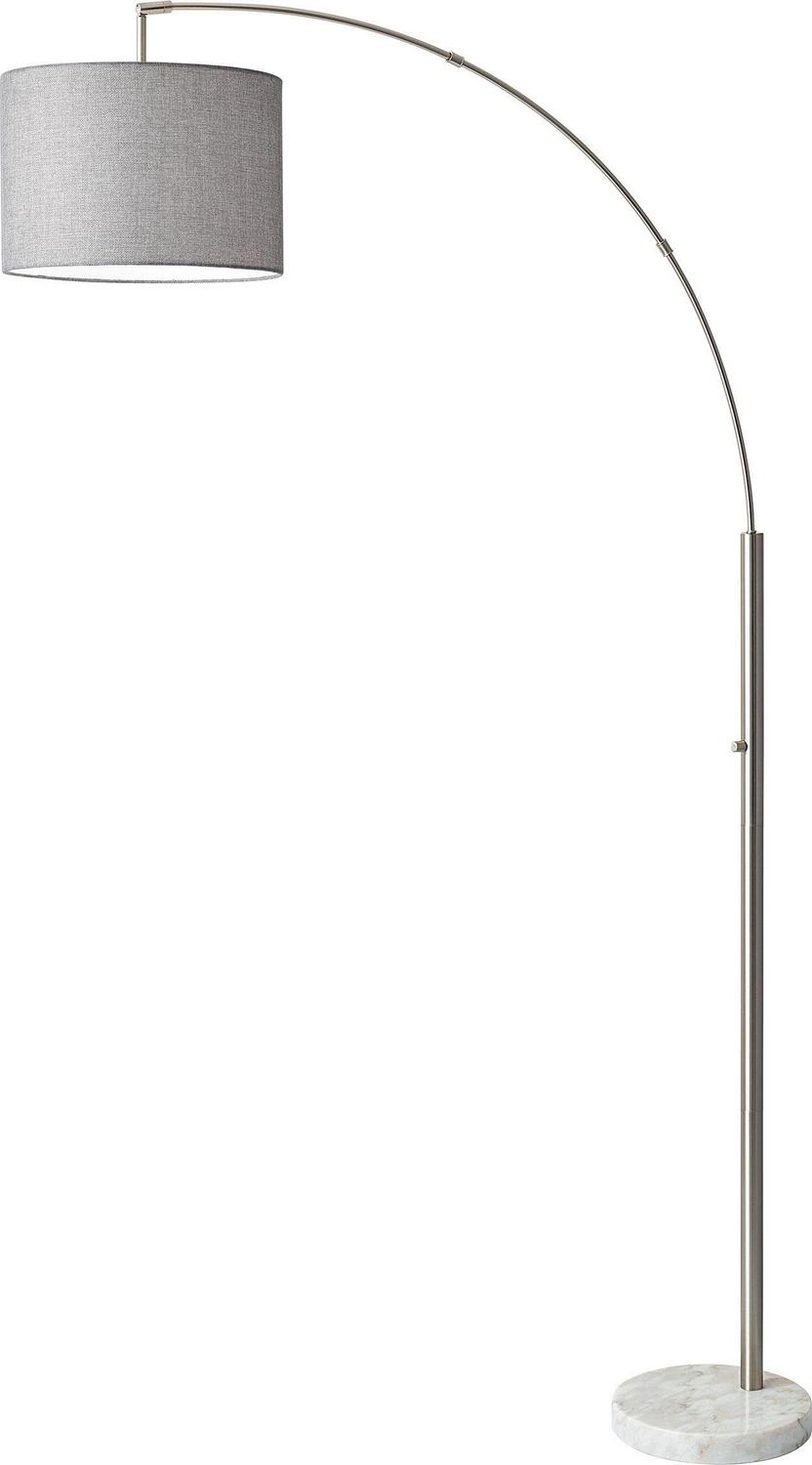 Adesso Bowery Arc Lamp Brushed Steel Grey tweed-like linen