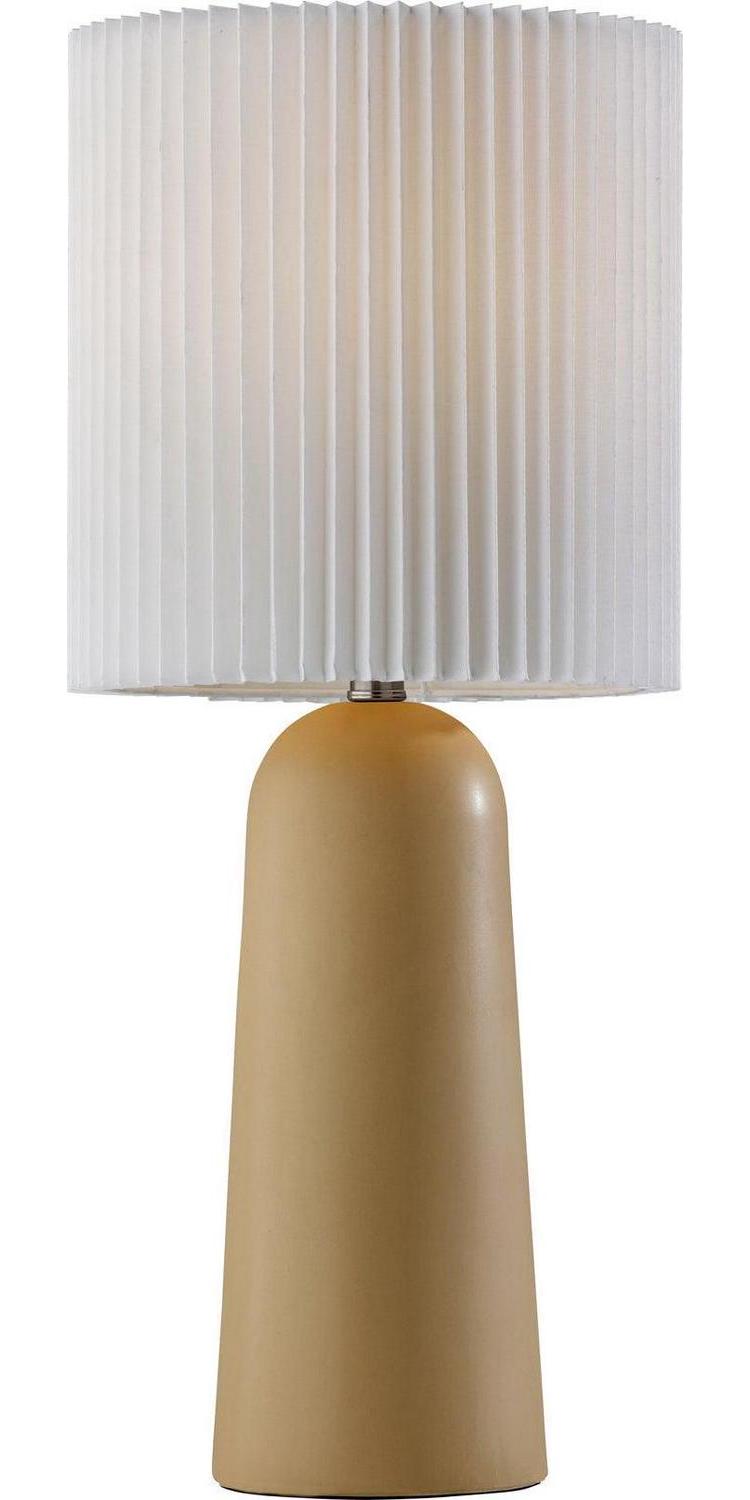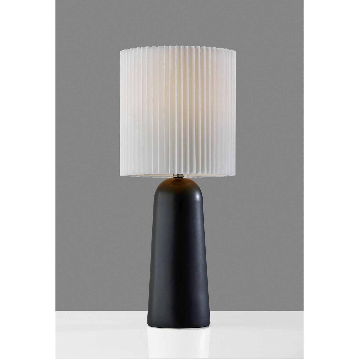 Less is more! With a casual and elegant design, the 26″ tall Callie table lamp complements elegant, Scandinavian décor. The 6″ diameter dome base features clean lines and beige ceramic construction while the white pleated fabric drum shade adds an elegant design touch. Operated by a rotary socket switch to easily turn the 100W bulb on or off, the table lamp is also powered by a 5′ clear cord. For a variety of style options, the Callie table lamp is also available with a black or white ceramic base.