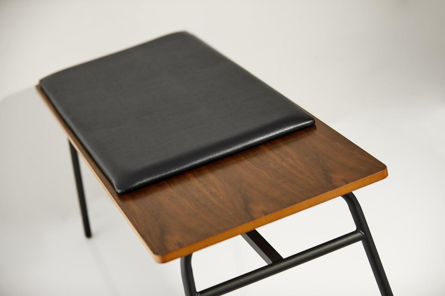 – Walnut Veneer on MDF w. a Black PVC Fabric covered foam seat