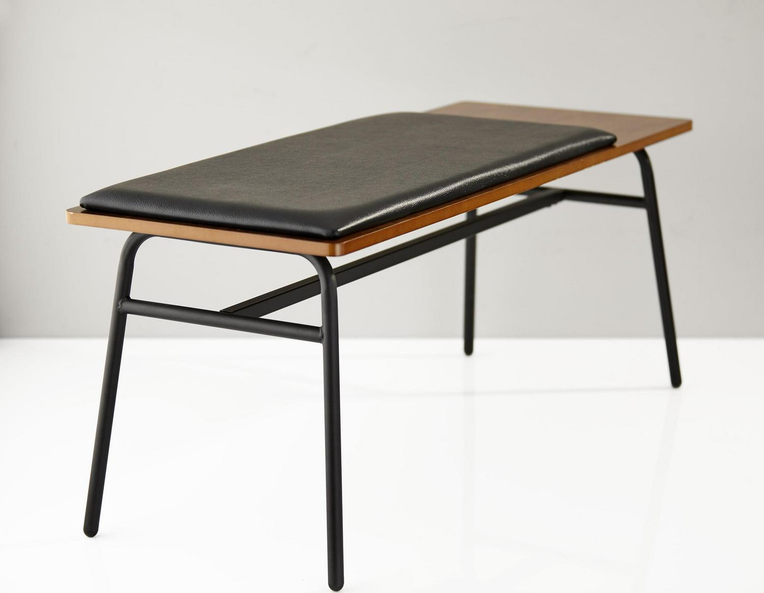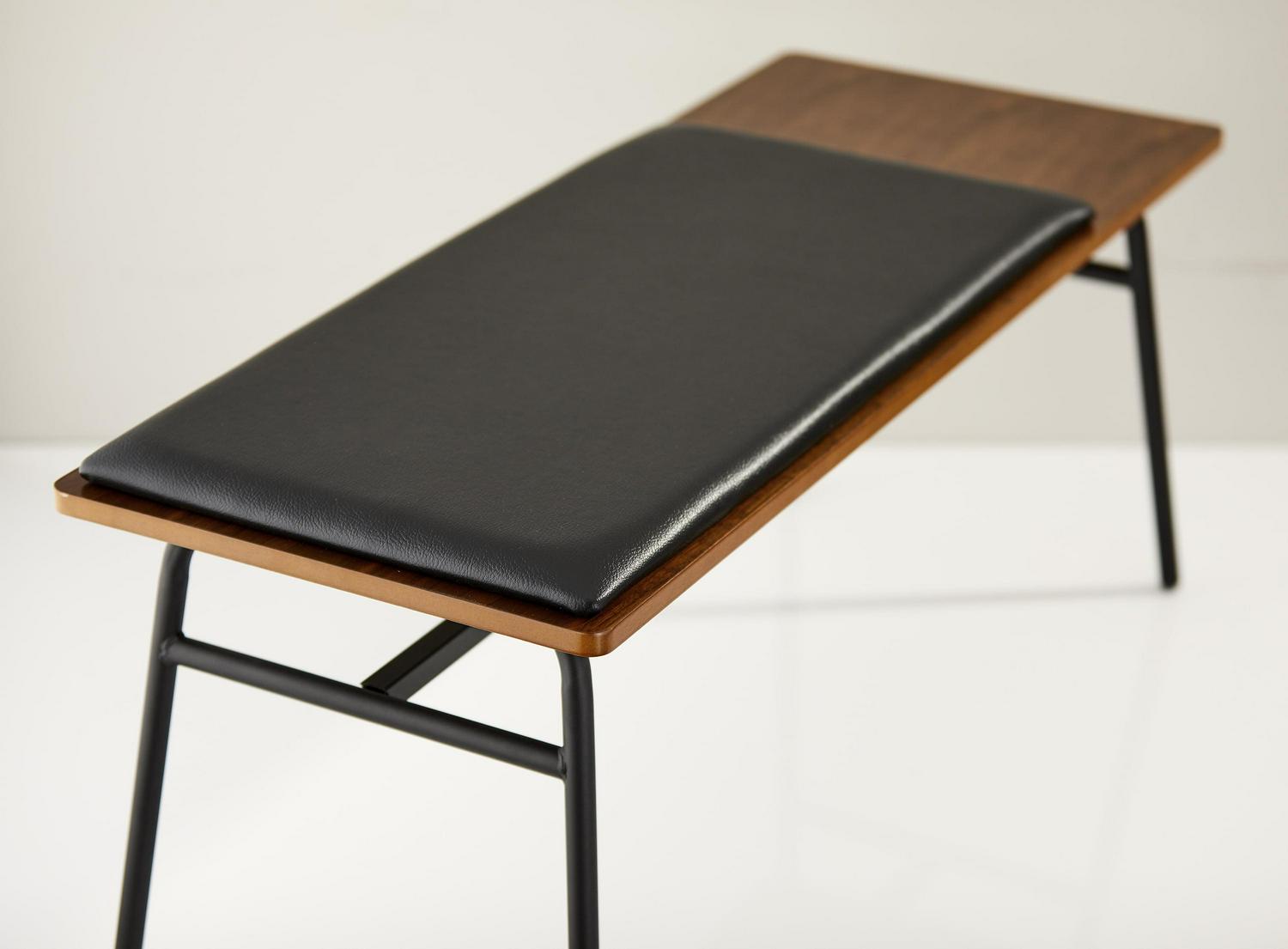 Perfect for the entryway or bedroom, the Carter Bench is the perfect blend of style and comfort. A wood table top space for storage and a soft foam seat offer multiple functions. A mix of rich walnut tones with matte black metal reveals modern, but versatile styling. Not only versatile in style, the Carter Bench can double as a coffee table in your living room, or a nice accent piece for the end of the bed in the bedroom.