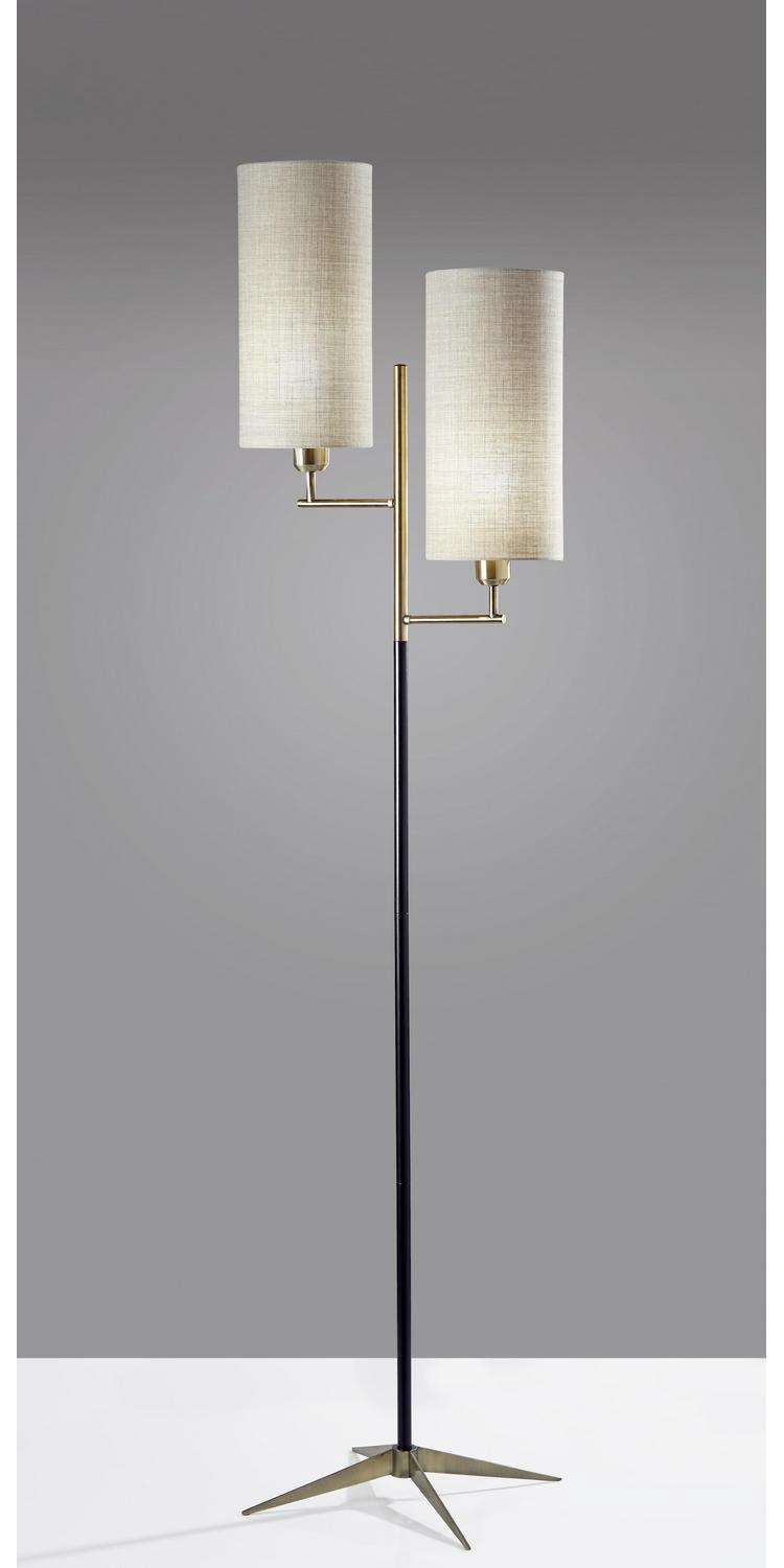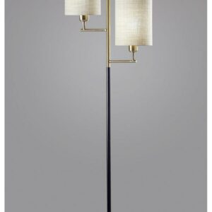 Adesso Davis Floor Lamp Matte Black and Antique Brass Natural Textured Fabric