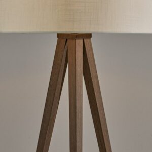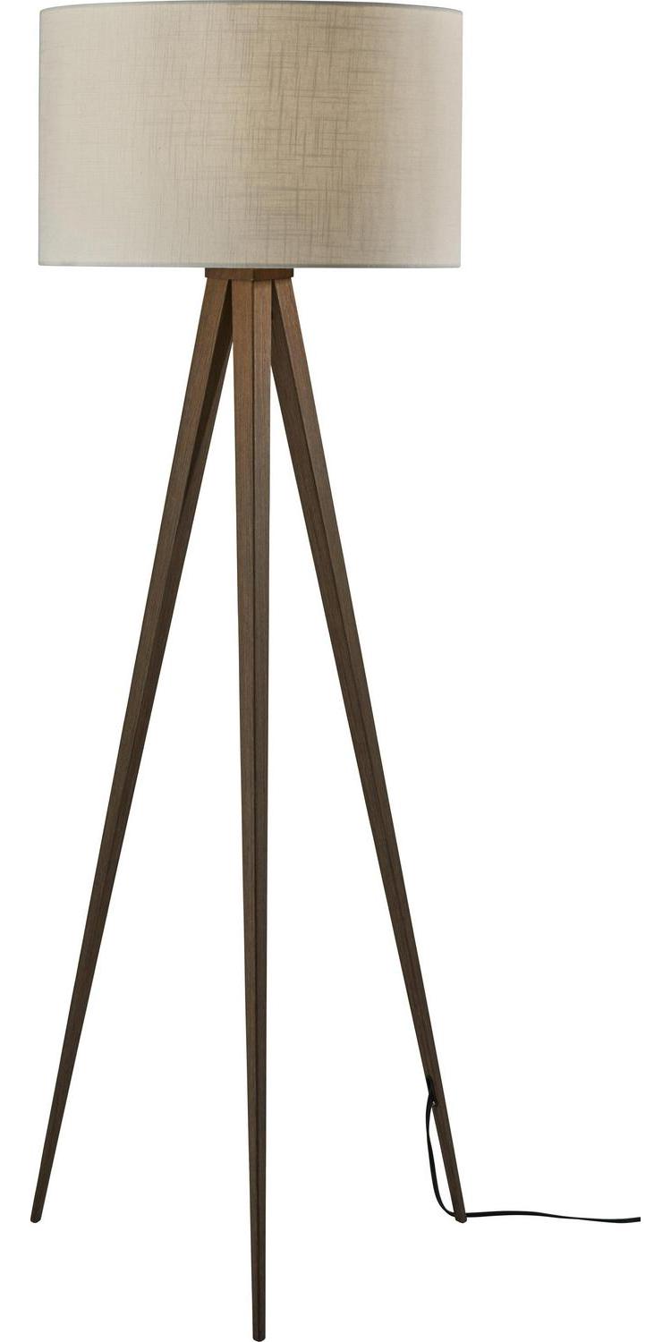Introduce a warm, rustic accent to your living room or bedroom with the Director floor lamp. The walnut wood grain tripod legs are an angular counterpoint to the off-white textured drum shade. A sharp contemporary silhouette is softened by warm tones. A three-way rotary switch on the socket controls a 150 Watt incandescent bulb or equivalent CFL. The 3-way rotary socket switch will only work with a 3-way light bulb, otherwise this lamp will function with simple on/off switch at its highest setting. This lamp has a black cord that runs through the leg, hidden from sight. This lamp is also smart outlet compatible. Bulb is not included.