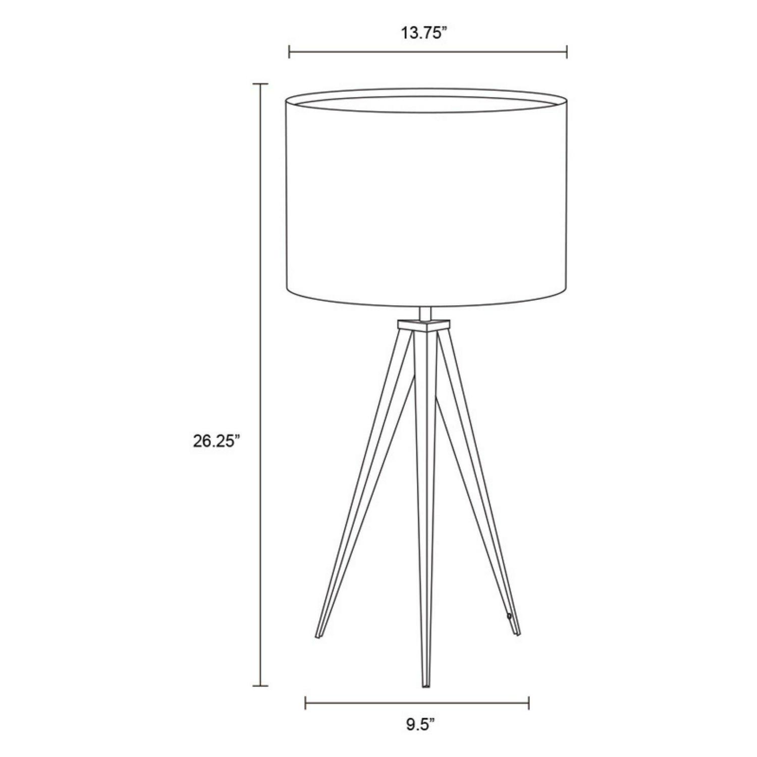 – Accent Desk Lamp: Introduce a contemporary accent to your living room or bedside with the Director Table lamp. The black metal tripod legs are an angular counterpoint to the black drum shade. A three-way rotary switch on the socket controls a 100 Watt incandescent bulb or equivalent CFL.