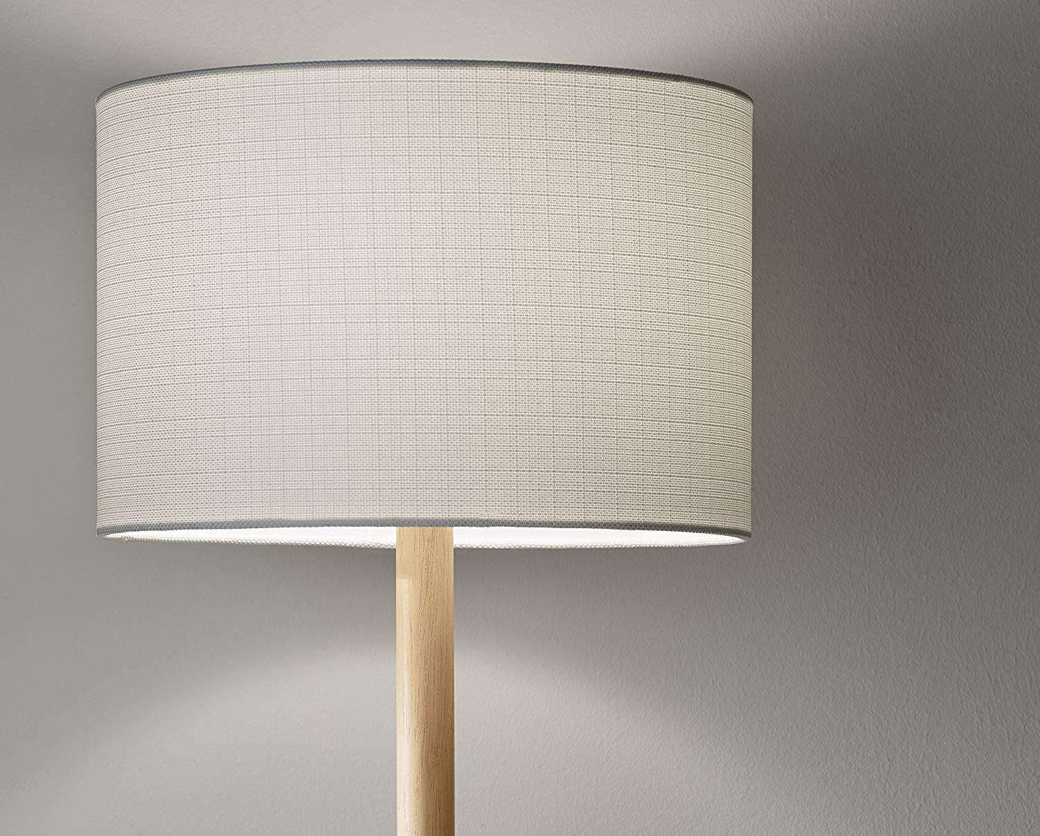 Adesso Ellis Floor Lamp Natural Rubber Wood White Textured Linen