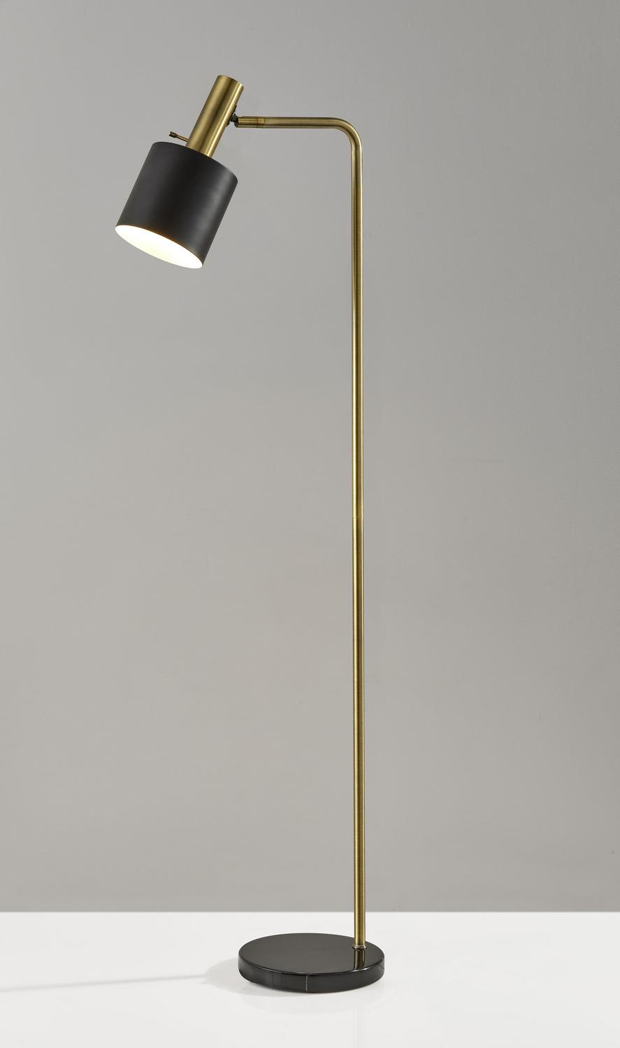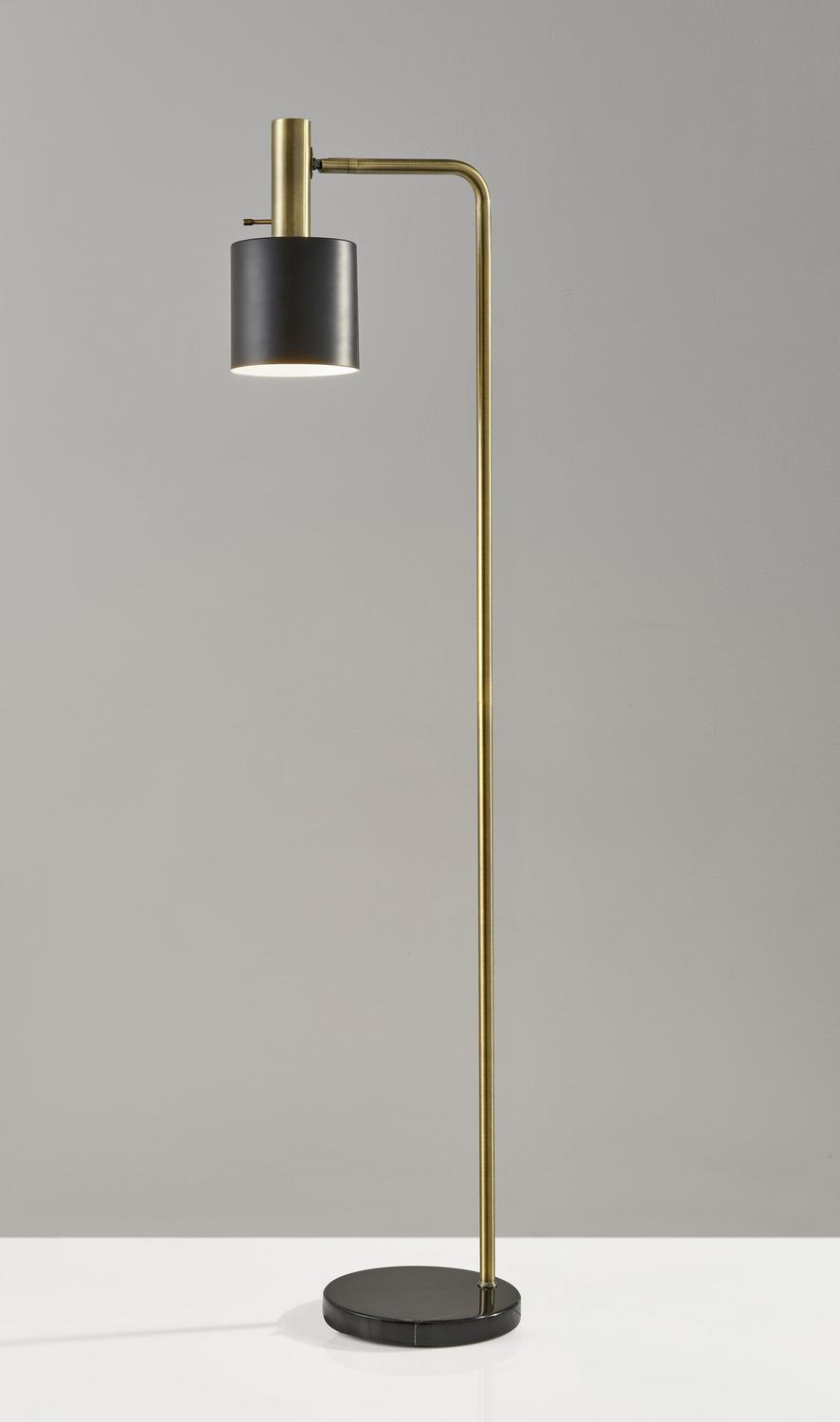 Adesso Emmett Floor Lamp, Antique Brass and Black
